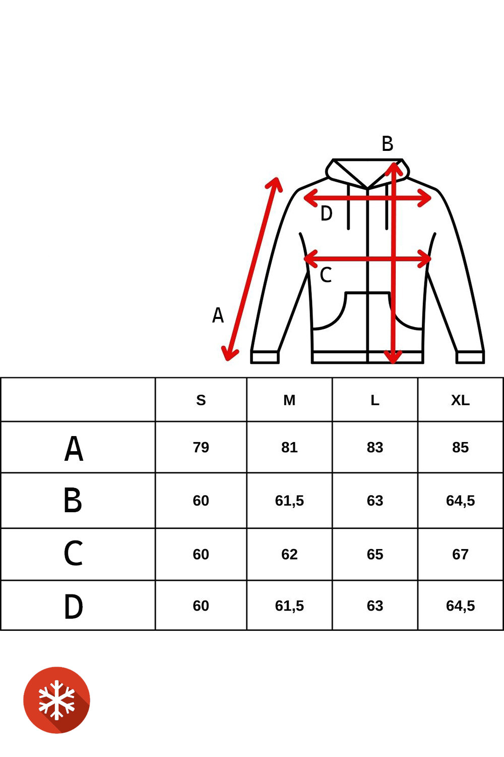 - Der Anorak wird mit einem Reißverschluss (auf halber Strecke) geschlossen.