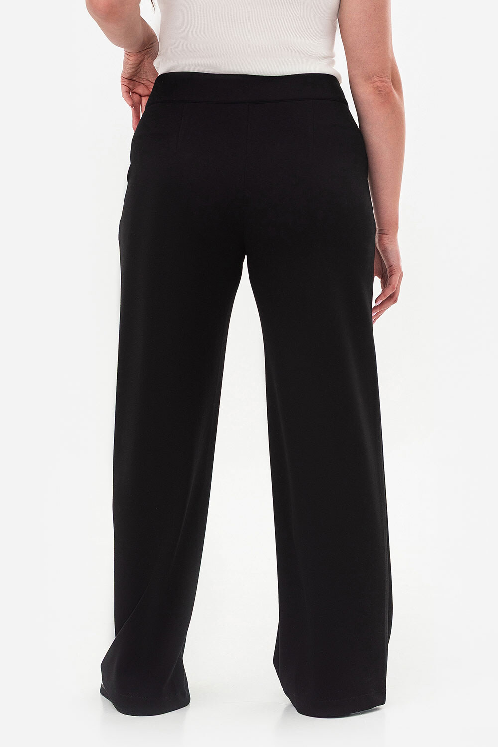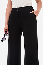 - Фасон із середньою посадкою та прямим кроєм штанин візуально подовжує силует, а витончений кант спереду додає структурності й акцентує вертикаль.