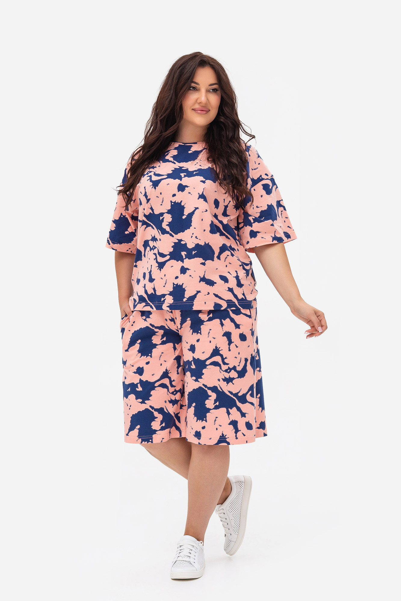 Damska koszulka i szorty na lato z różowym nadrukiem Garne 3034746