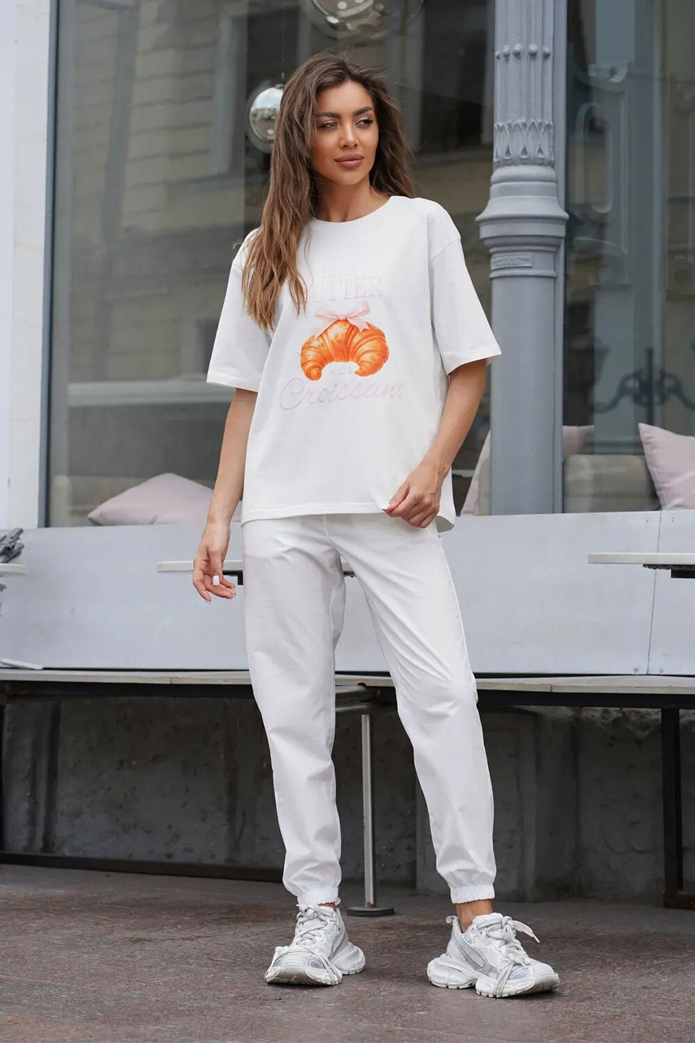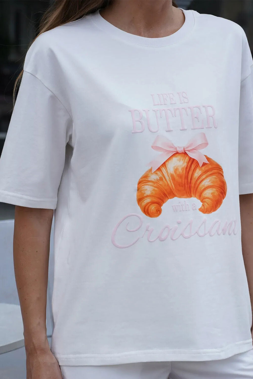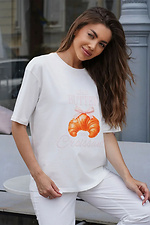 Damski bawełniany T-shirt oversize z nadrukiem Croissant Biały Teamv 8034445