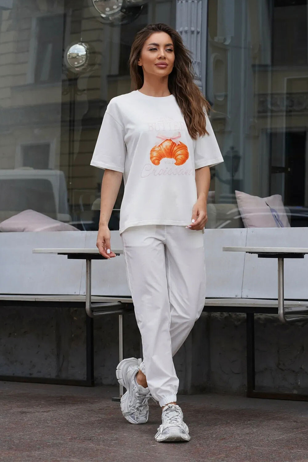 Жіноча бавовняна оверсайз футболка з принтом Croissant Біла Teamv 8034445