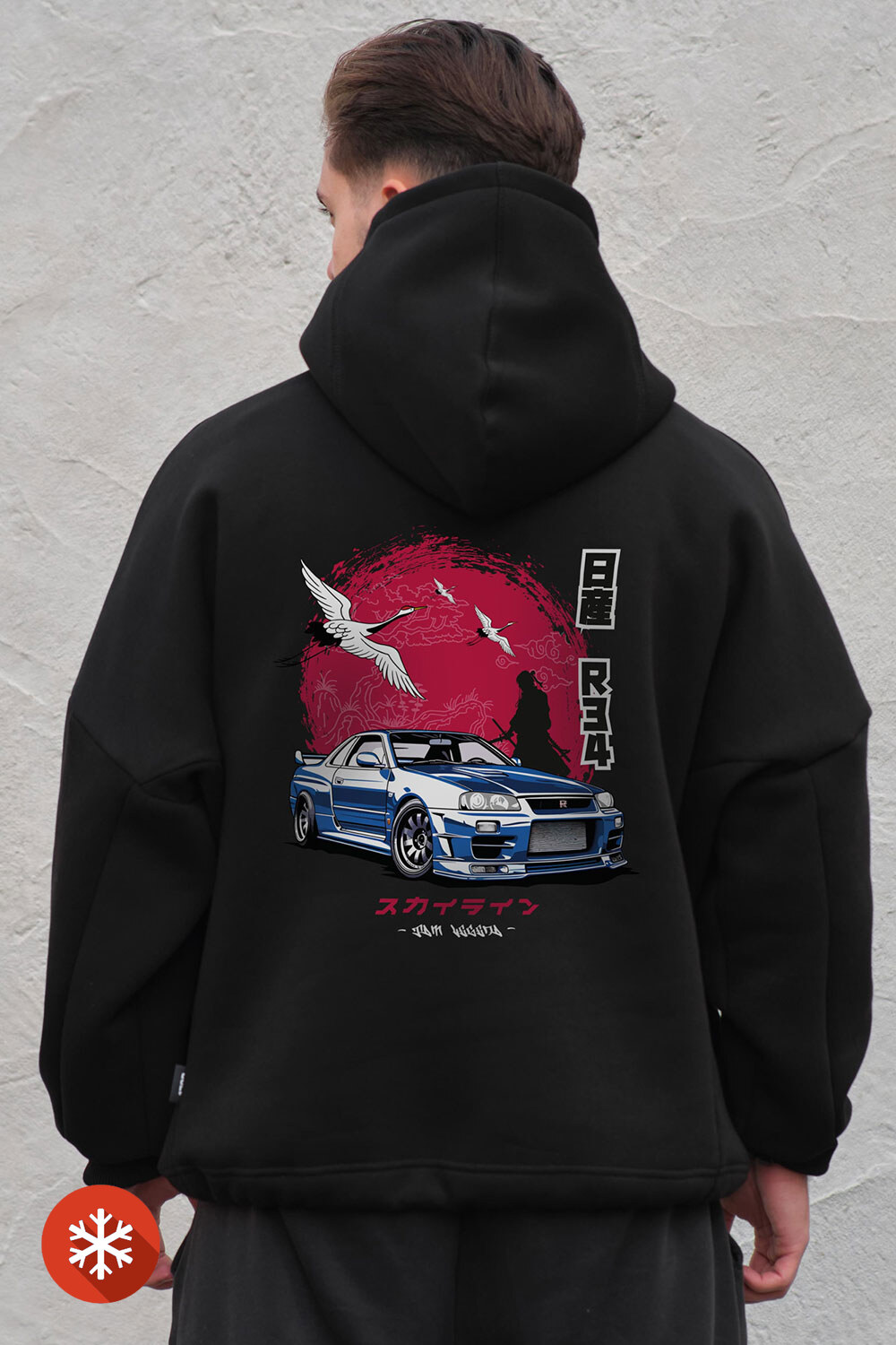 Чоловіче Оверсайз Худі Толстовка На Флісі З Капюшоном Та Принтом Skyline Black Without 8055548