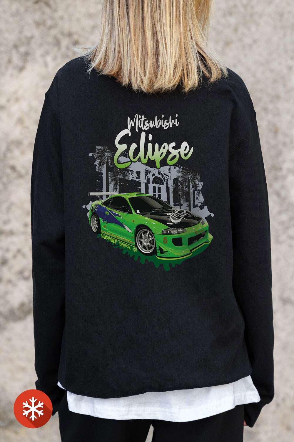 Женский Утепленный Оверсайз Свитшот На Флисе С Принтом Eclips Black Without 8055603
