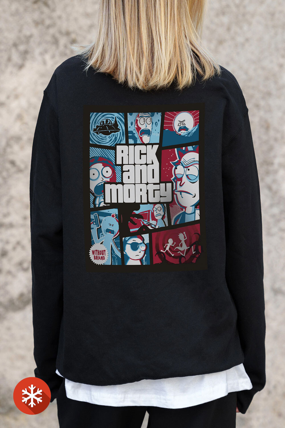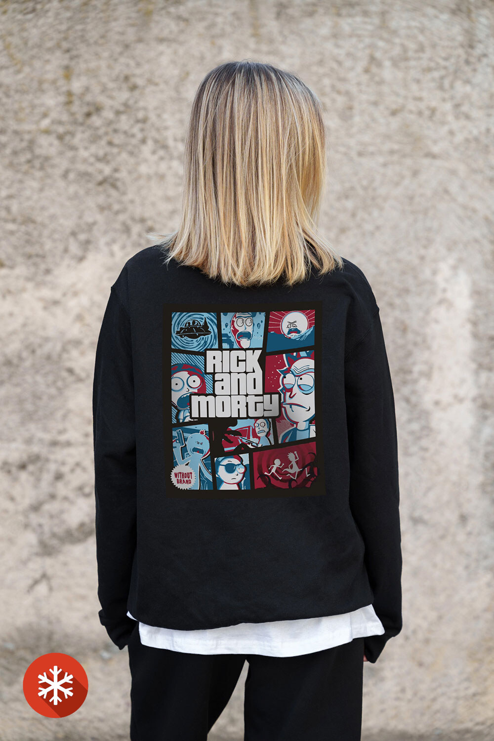 Жіночий Утеплений Оверсайз Світшот На Флісі З Принтом Rick and Morty Black Without 8055647