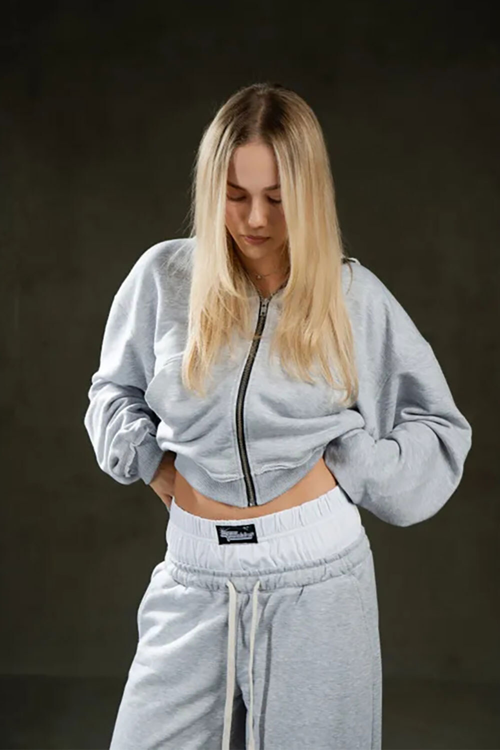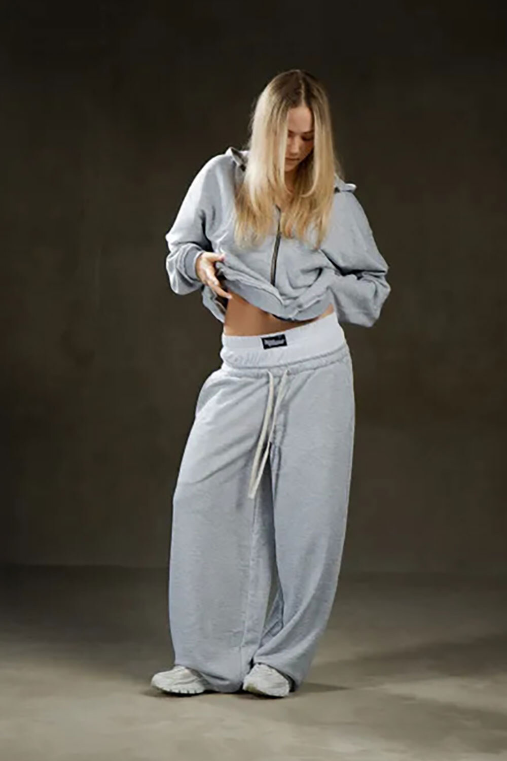 - Широкі штани вільного крою, тринитка з подвійним поясом.
