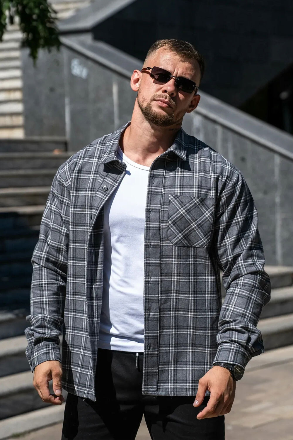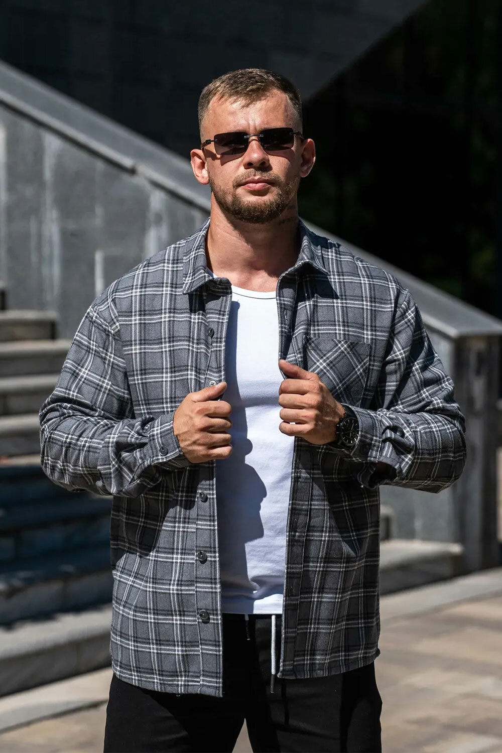 Чоловіча сорочка в клітинку із легкої бавовняної фланелі, темно-сіра Teamv 8034463