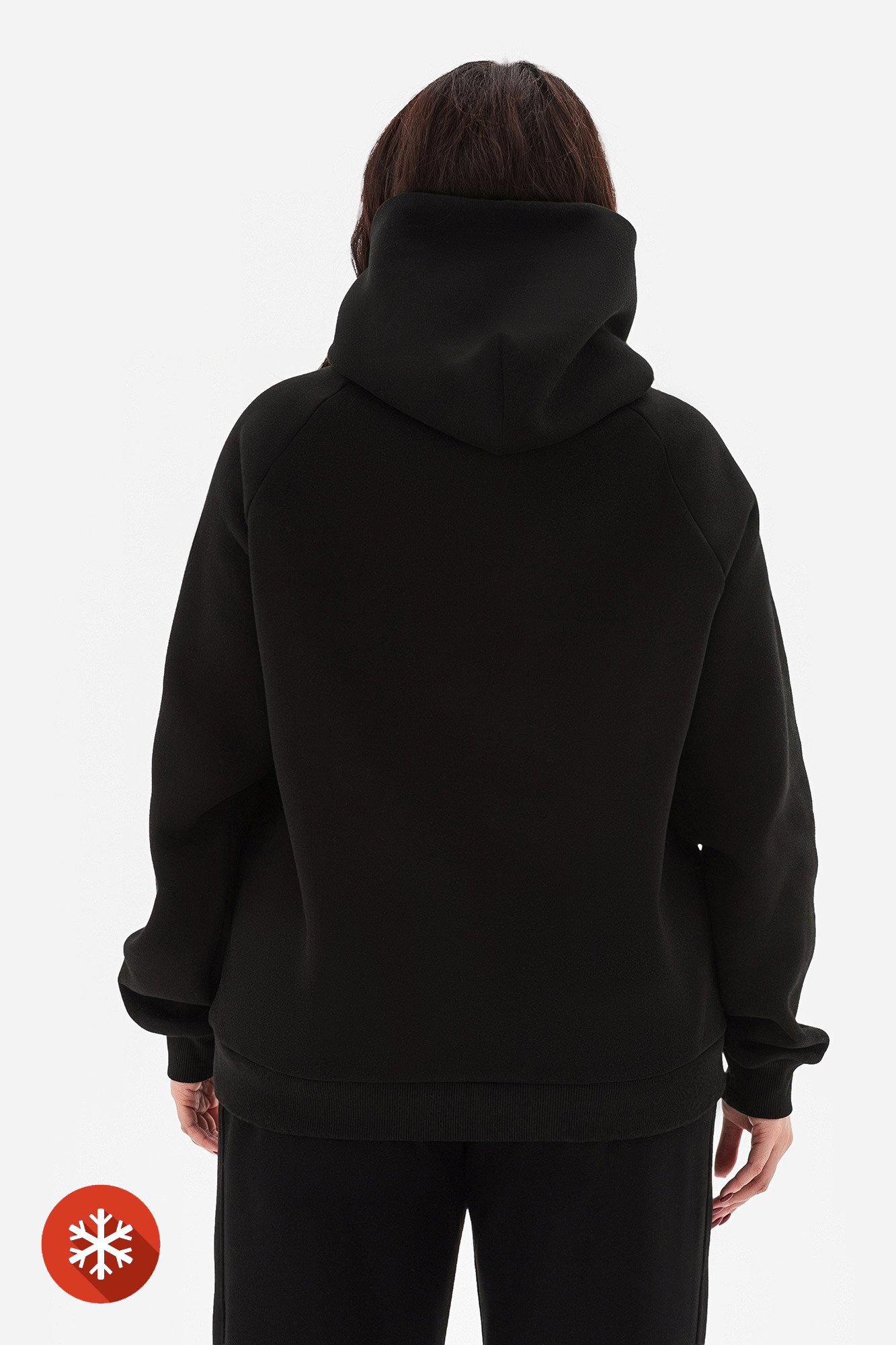 - Модель має об’ємний капюшон без шнурівки, рукав-реглан та зручну кишеню-кенгуру.