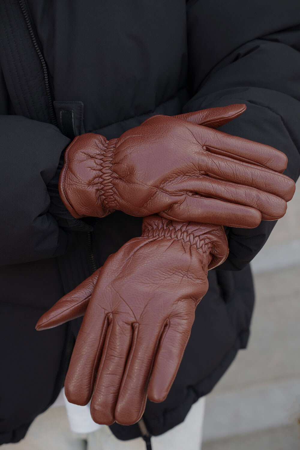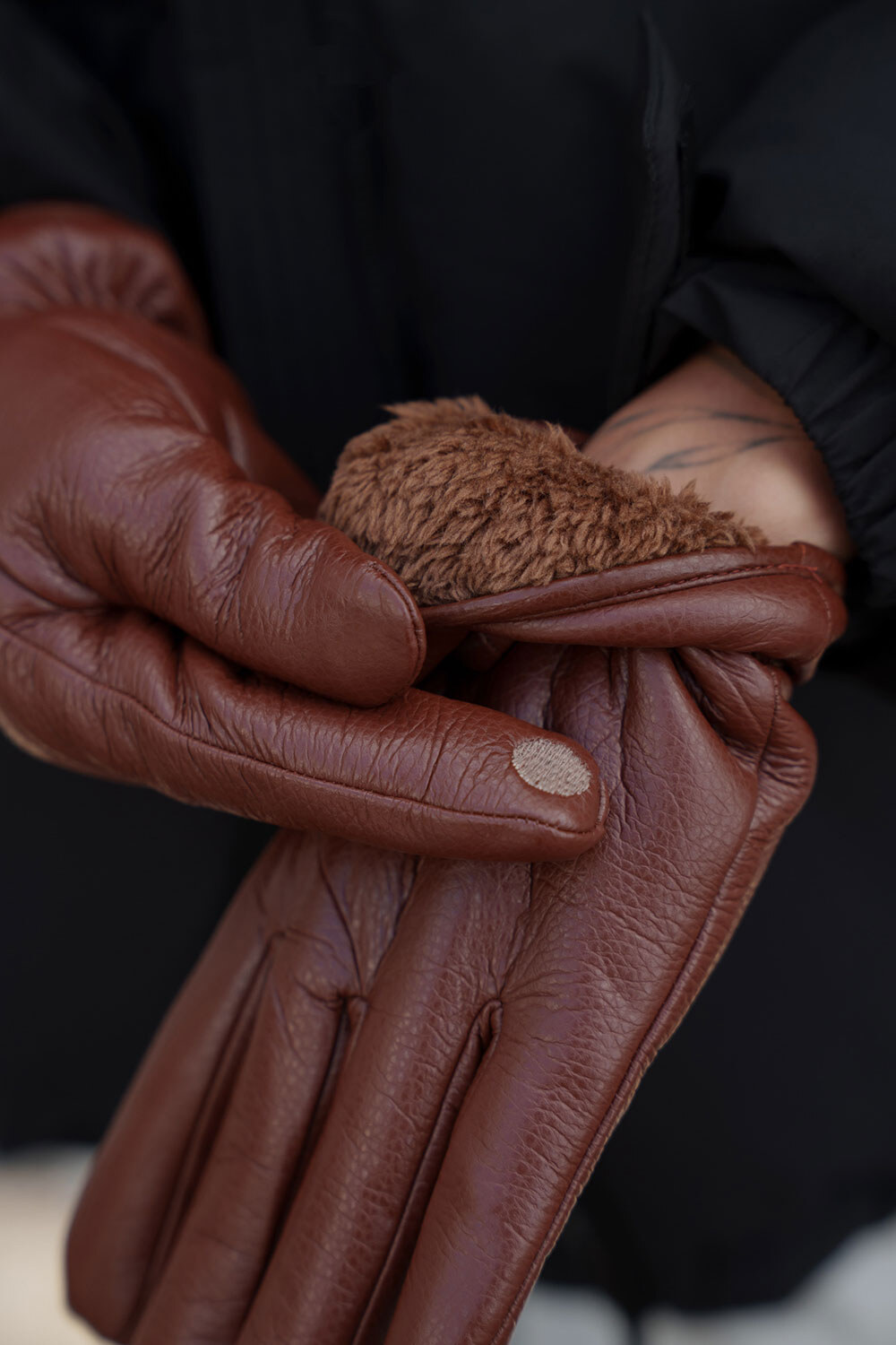 Жіночі шкіряні теплі зимові сенсорні перчатки рукавиці 1-59 Tomy Brown Without 8055911