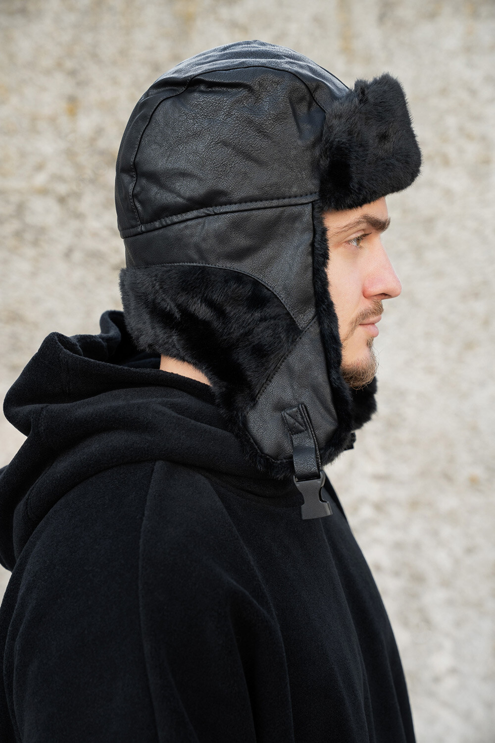Чоловіча Шкіряна Шапка Вушанка Galaxy Black Without 8055935