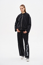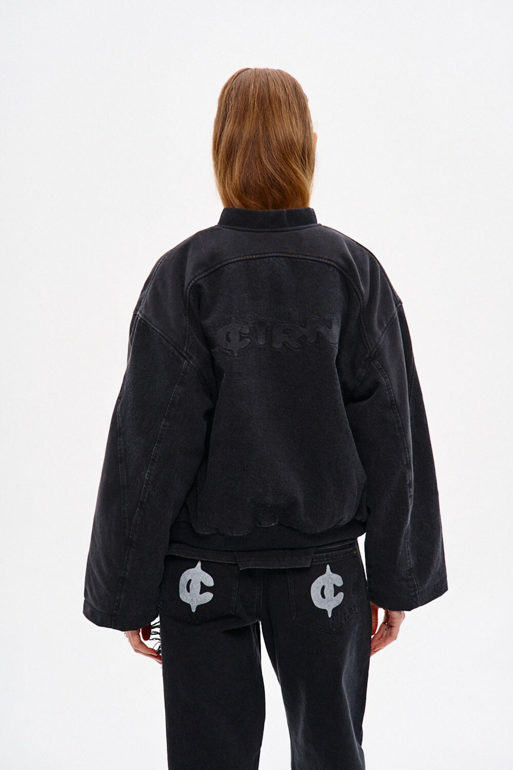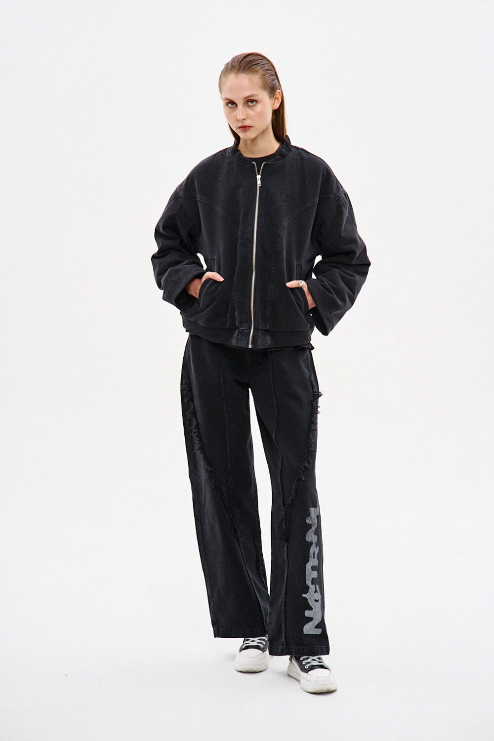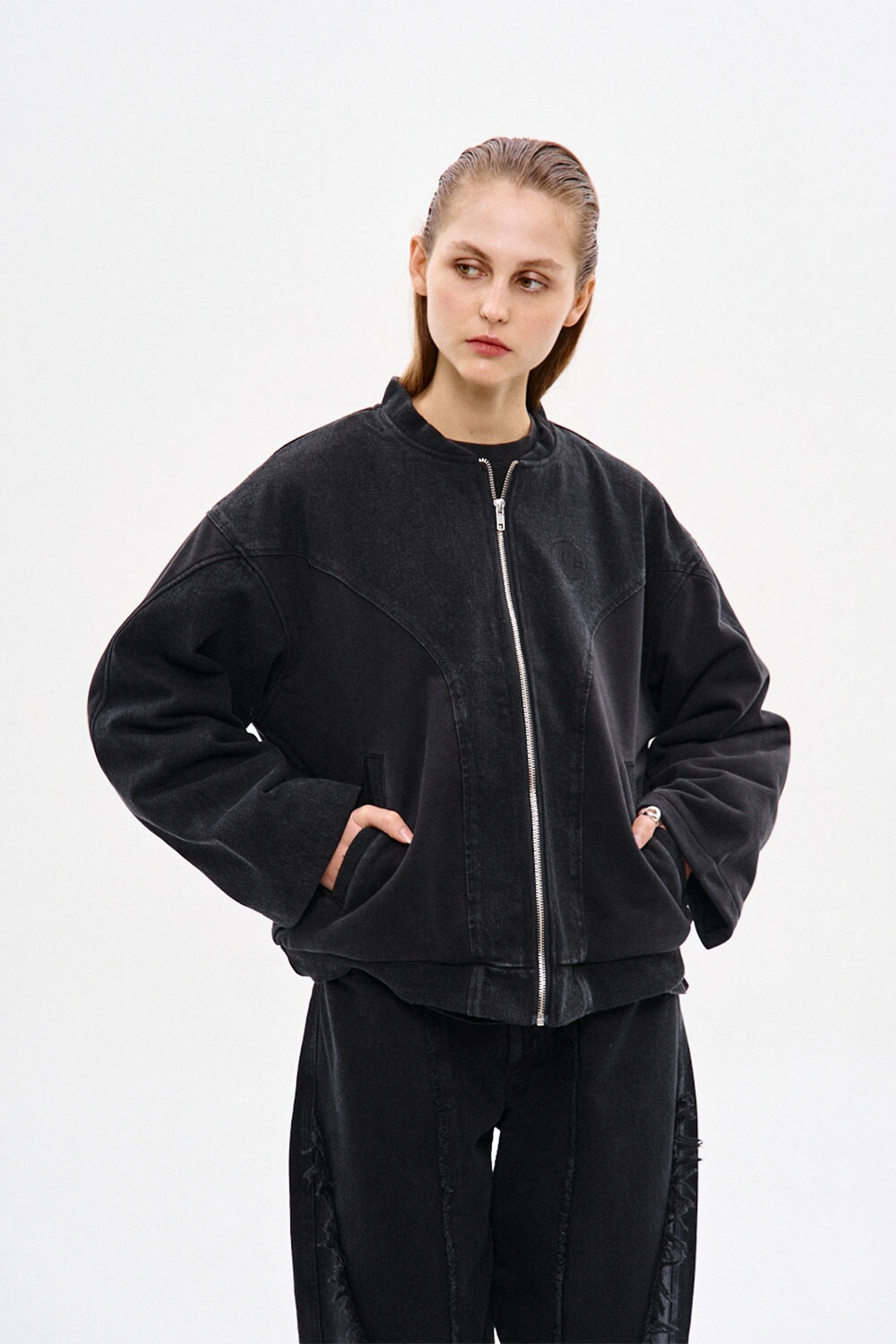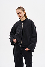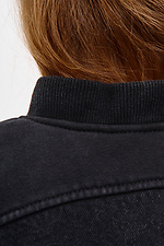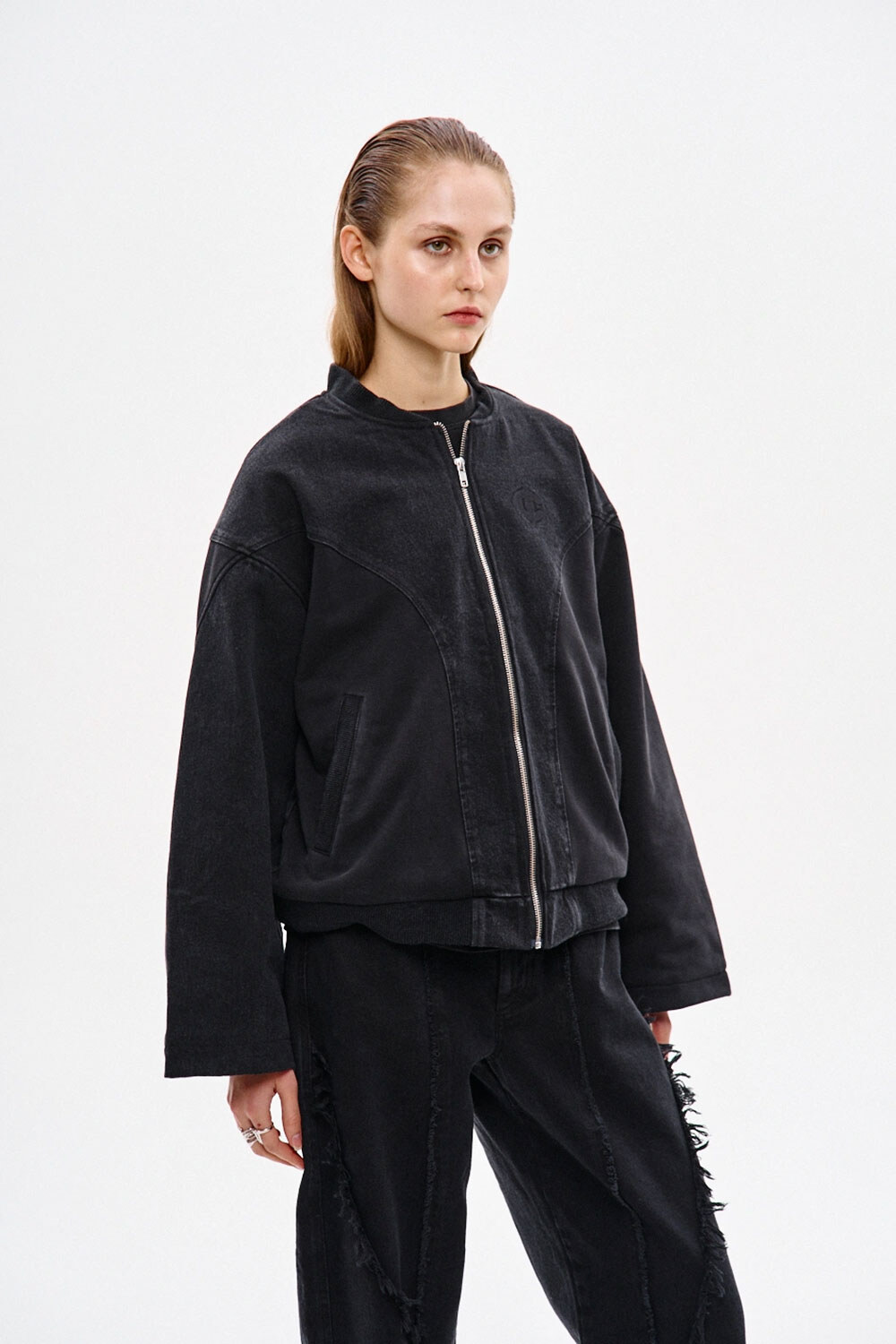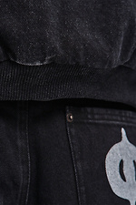 - Жіночий бомбер оверсайз крою, створений із джинсової тканини та щільного трикотажу під промислове прання.