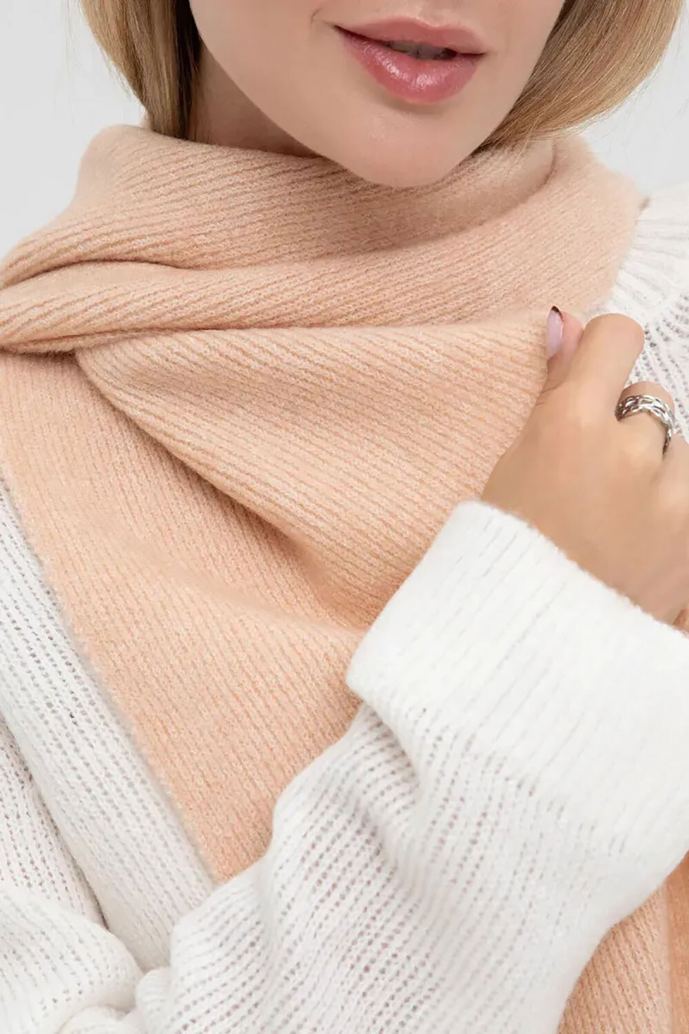 - Довгий класичний шарф, виконаний з мʼякої і теплої пряжі.