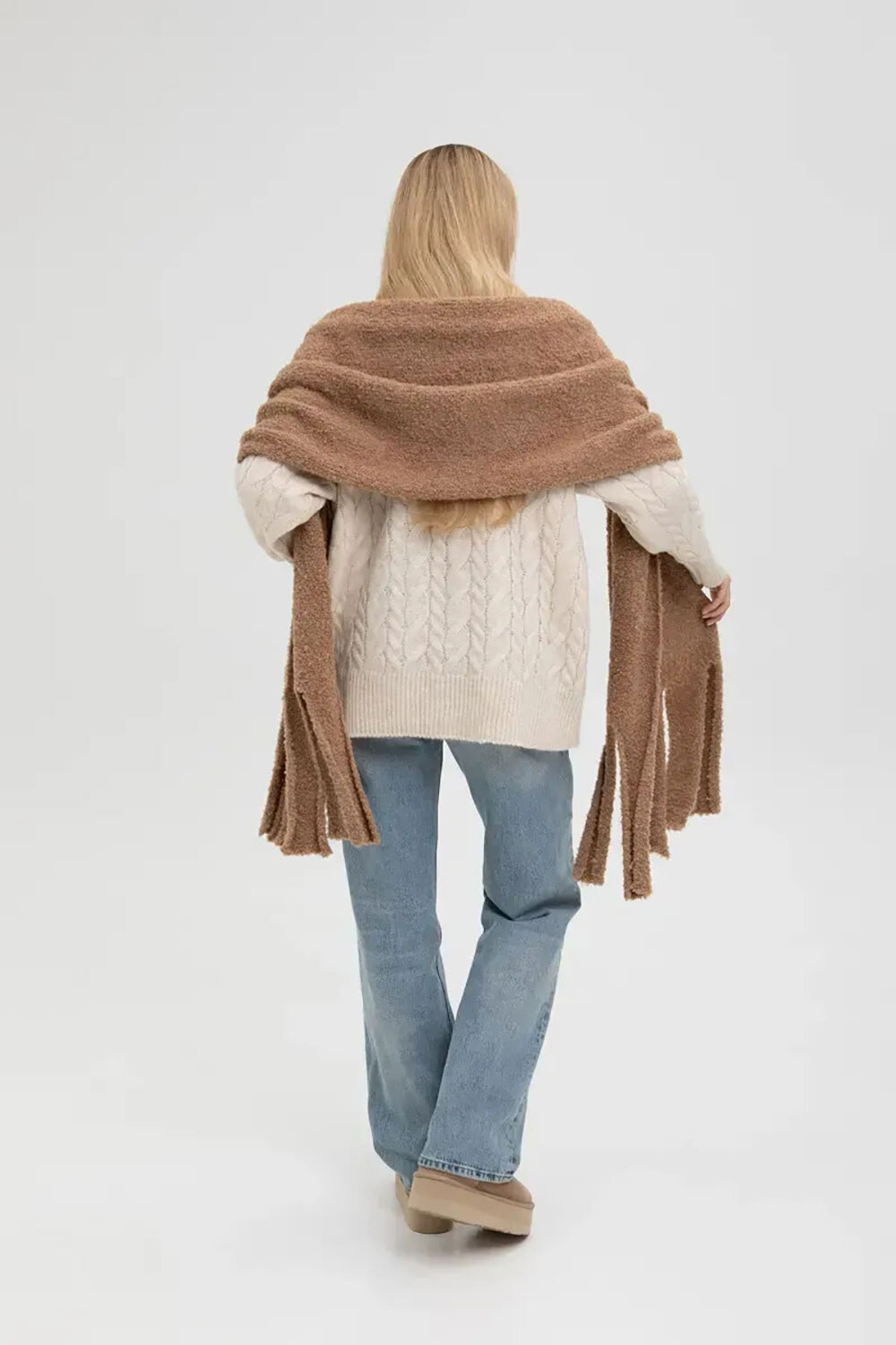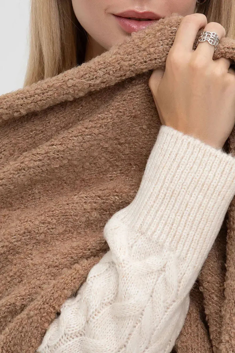 - Елегантний акцент у вашому образі — шарф-палантин, створений з преміальної італійської пряжі з високим вмістом вовни.