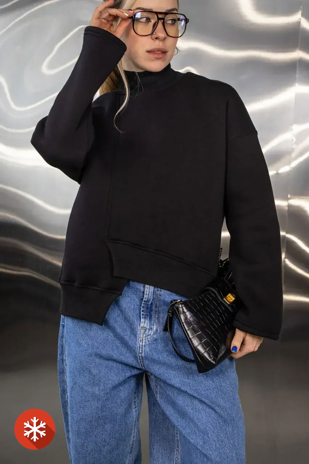 - Жіночий світшот із асиметричним низом — це стильна та оригінальна річ, яка поєднує комфорт і сучасний дизайн.