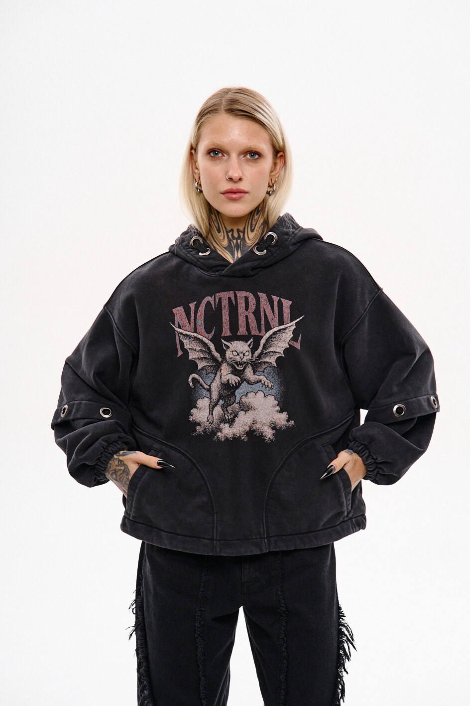 - Худі жіночого оверсайз крою з фігурними рельєфами.