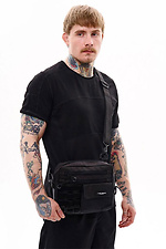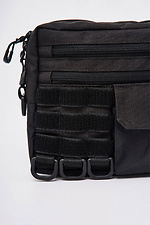 - Neben dem Fach befinden sich drei MOLLE-Gurtbänder mit aufgenähtem Klettverschluss für Rangabzeichen.