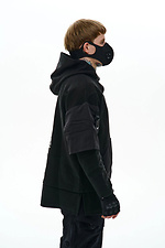 - Карман двойной: верхний вход — на молнии, боковой — в стиле кармана-кенгуру.