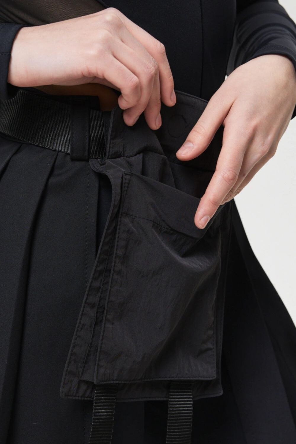 - Спідниця оснащена накладною кишенею та додатковими напівкільцями для дрібних аксесуарів, що підвищують функціональність.