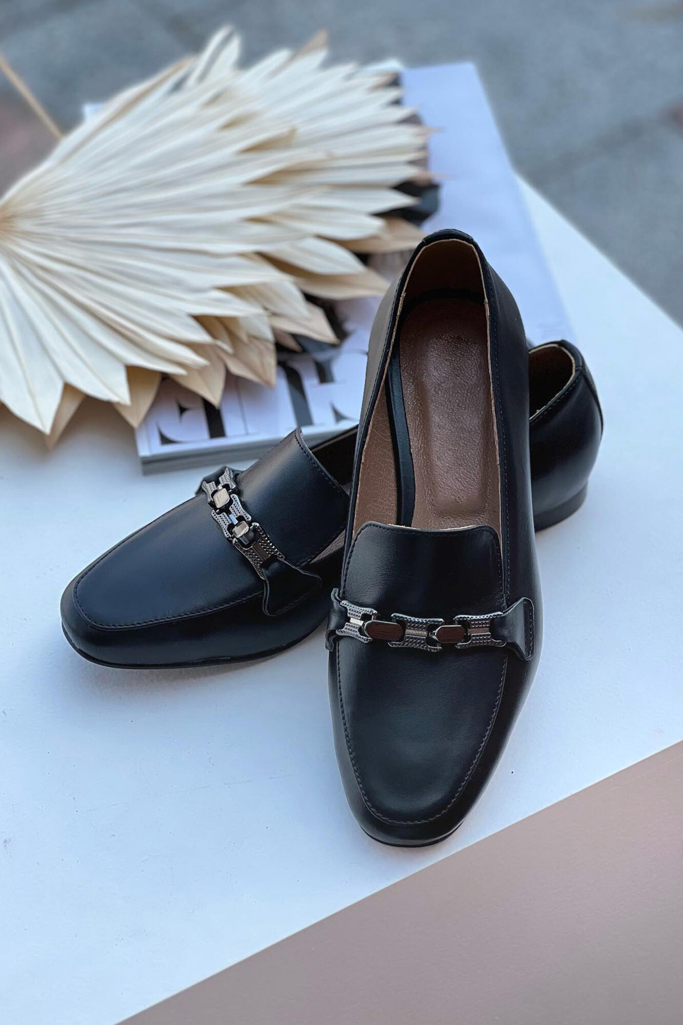 Damskie klasyczne skórzane buty na niskim obcasie