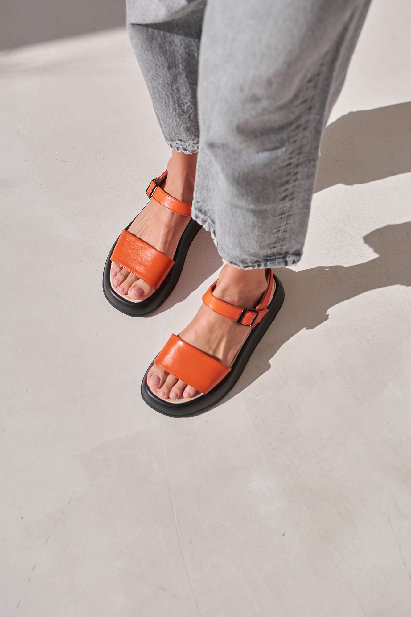 Pomarańczowe sandały na czarnej podeszwie z klamrą 4206119