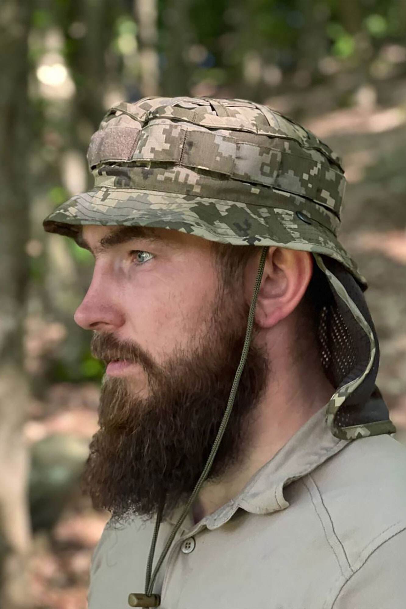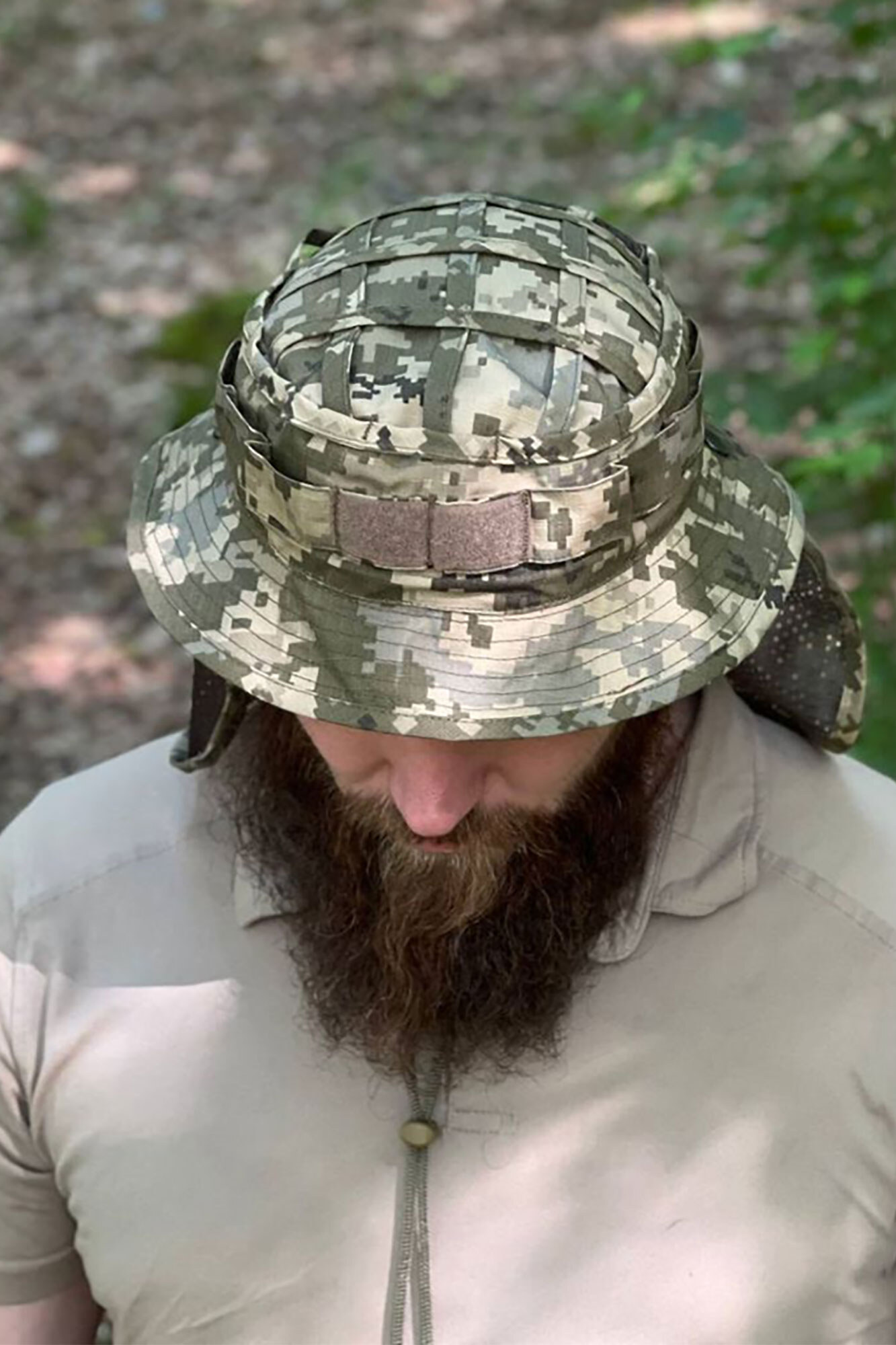 posiada taśmę na obwodzie do dodatkowego body lub kamuflażu, panel na rzep z przodu oraz siateczkę na górze czapki panamskiej dla dodatkowej wentylacji.