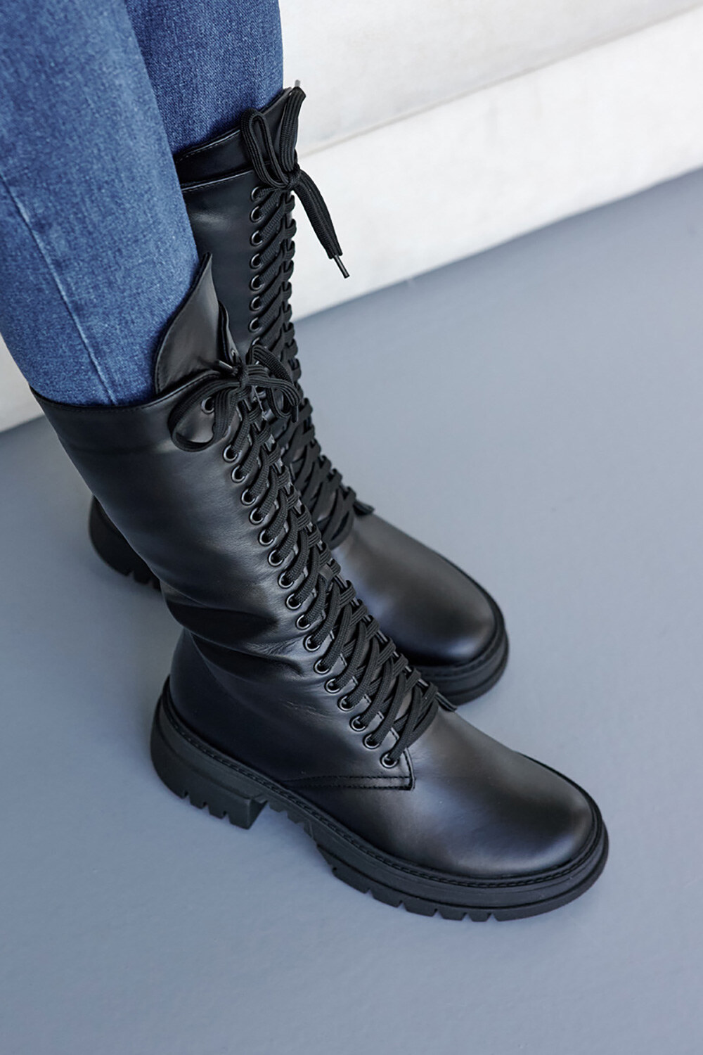 • Zimowe skórzane buty z szerokim i stabilnym obcasem to doskonały wybór.