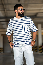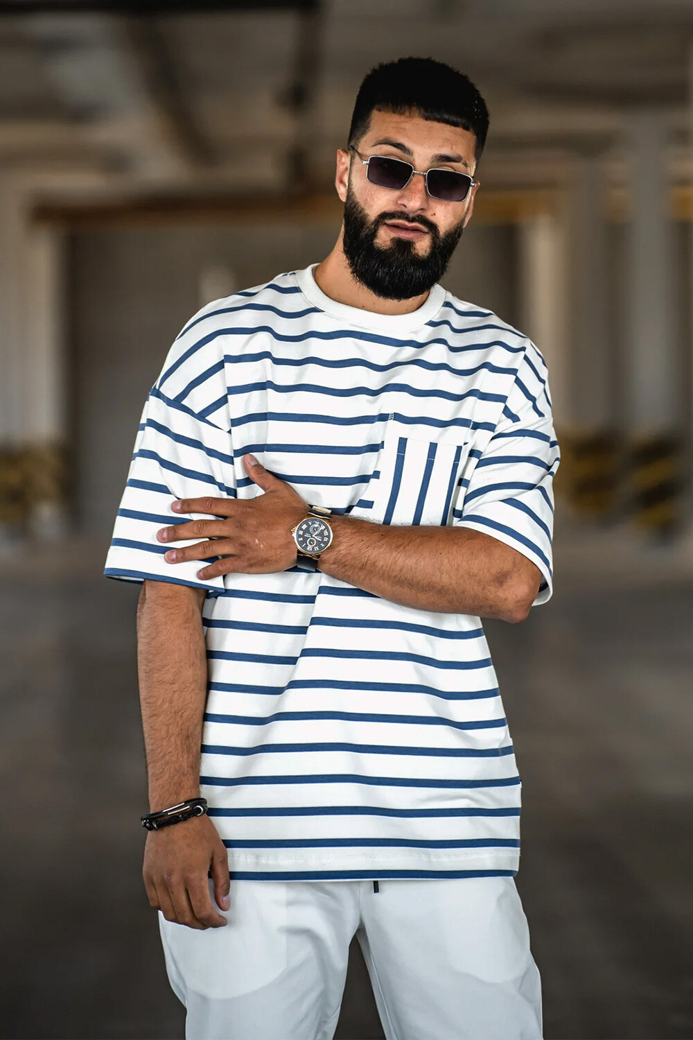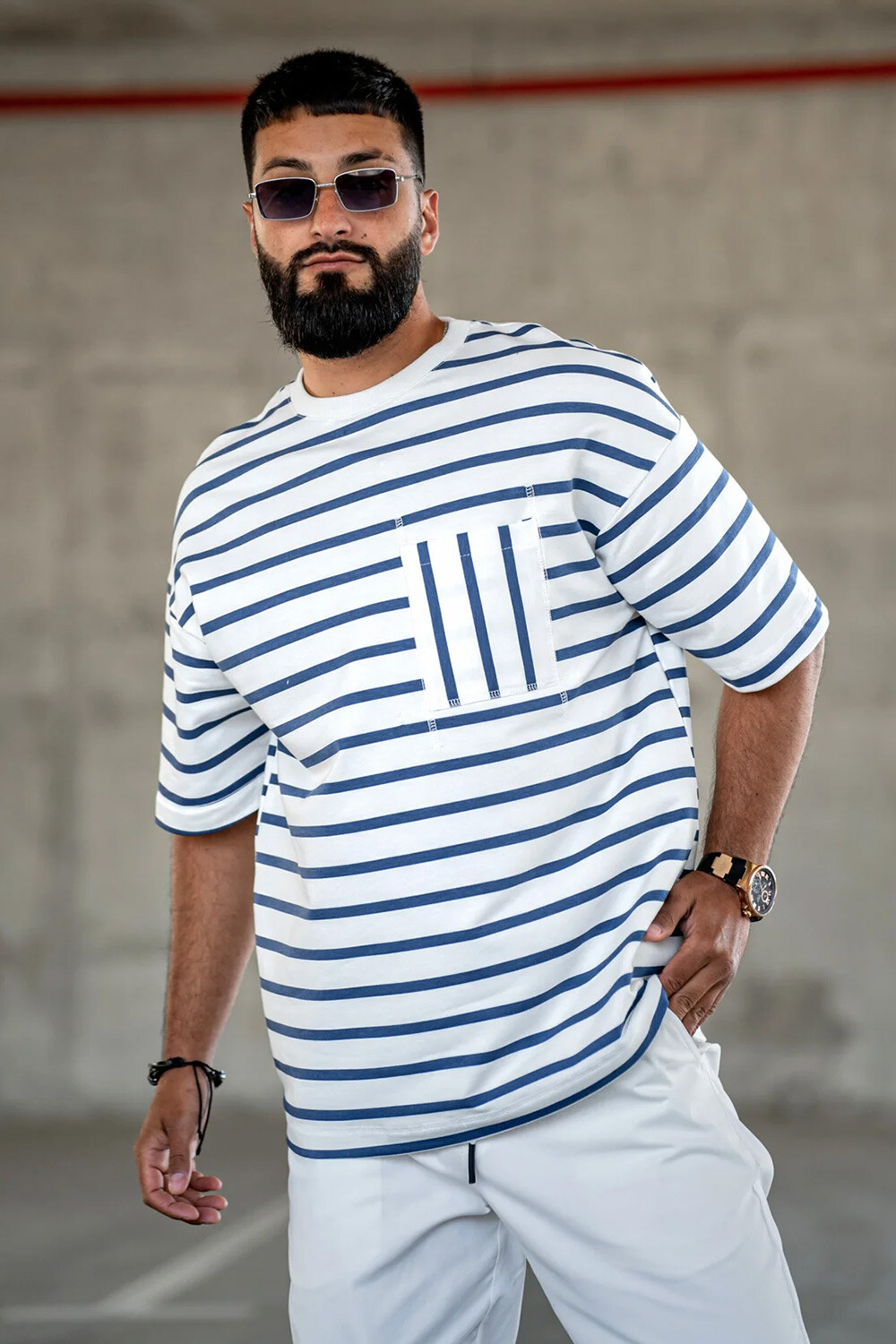 T-shirt męski oversize w paski Morski Błękit z bielą Teamv 8034220
