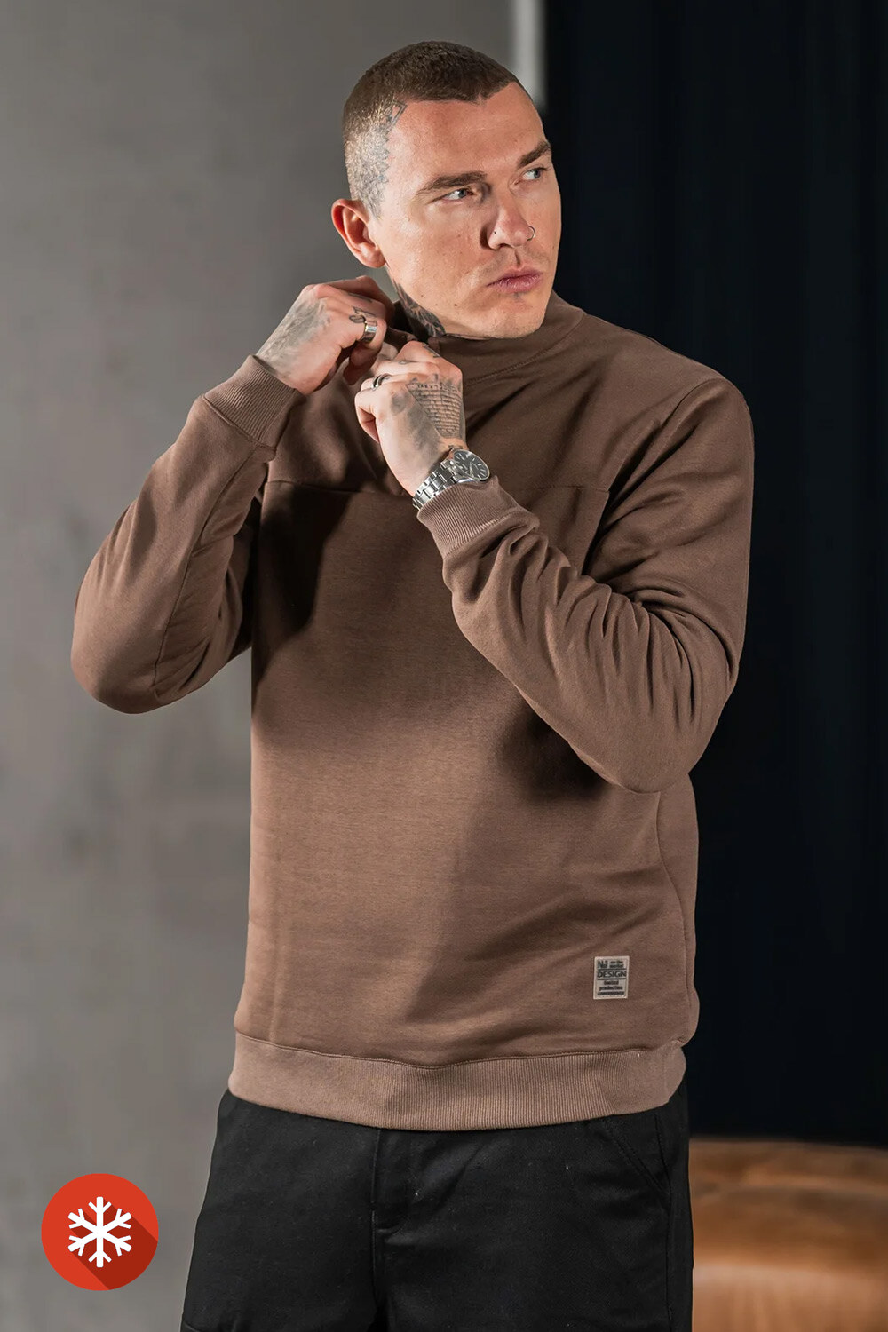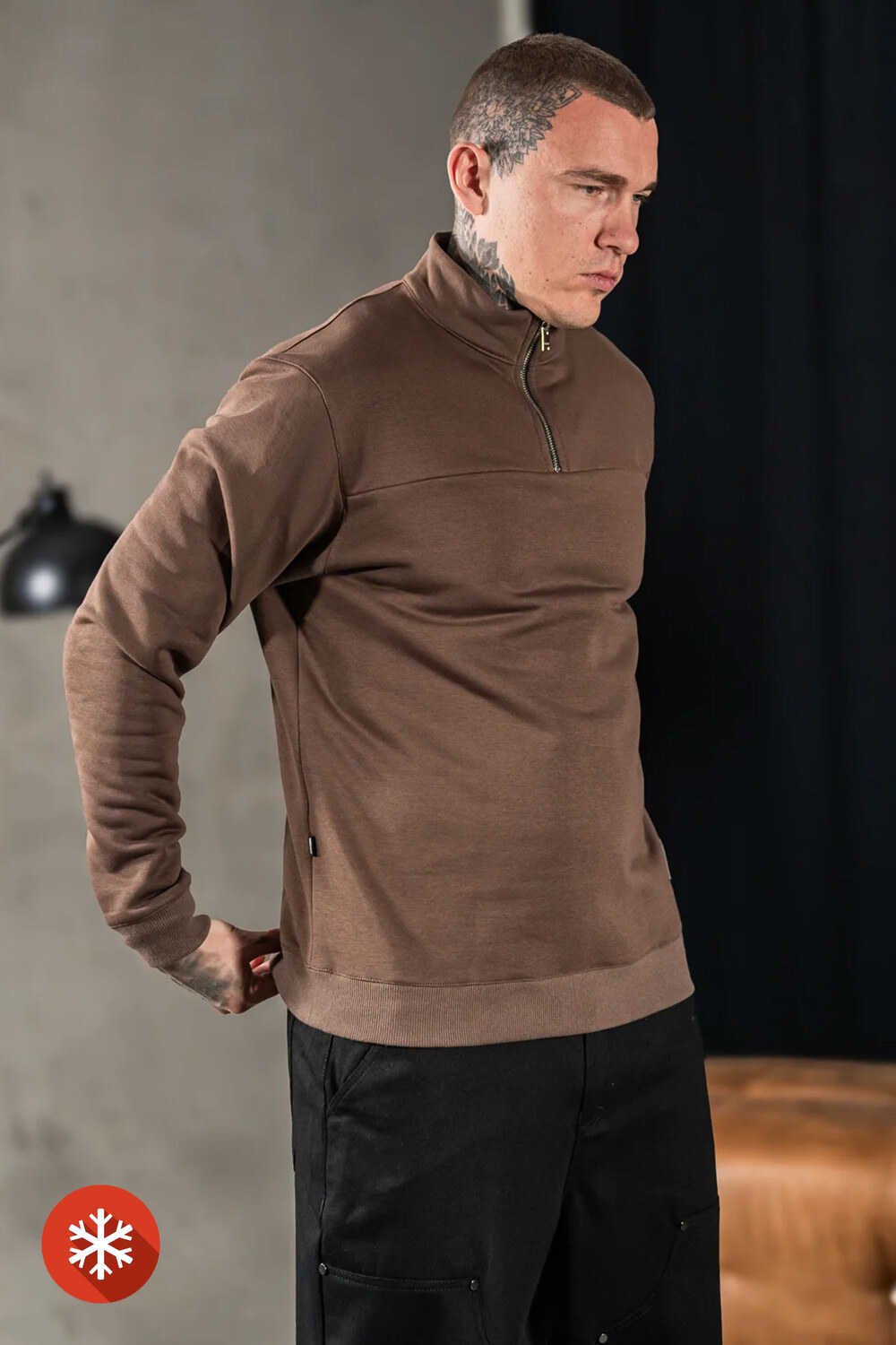 Warmes Herren-Sweatshirt mit Kragen und Reißverschluss in Braun Teamv 8034280