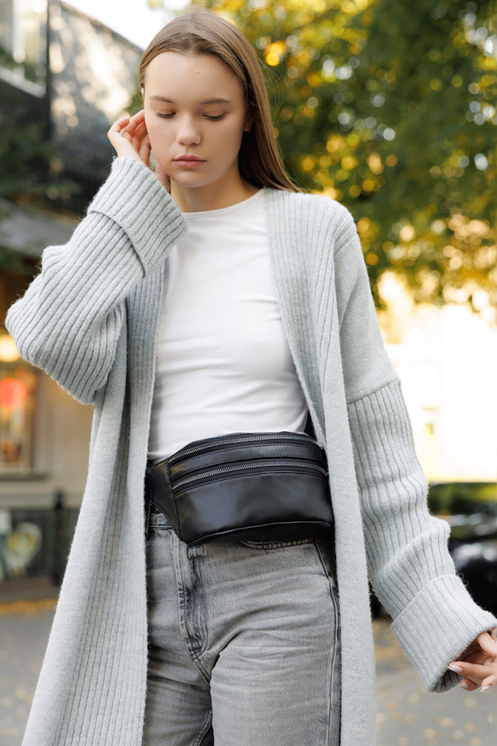 Größe: Die Tasche der Gürteltasche selbst ist 22x12x4 cm groß und die Länge mit den „Ohren“ an den Seiten beträgt 30,5 cm.