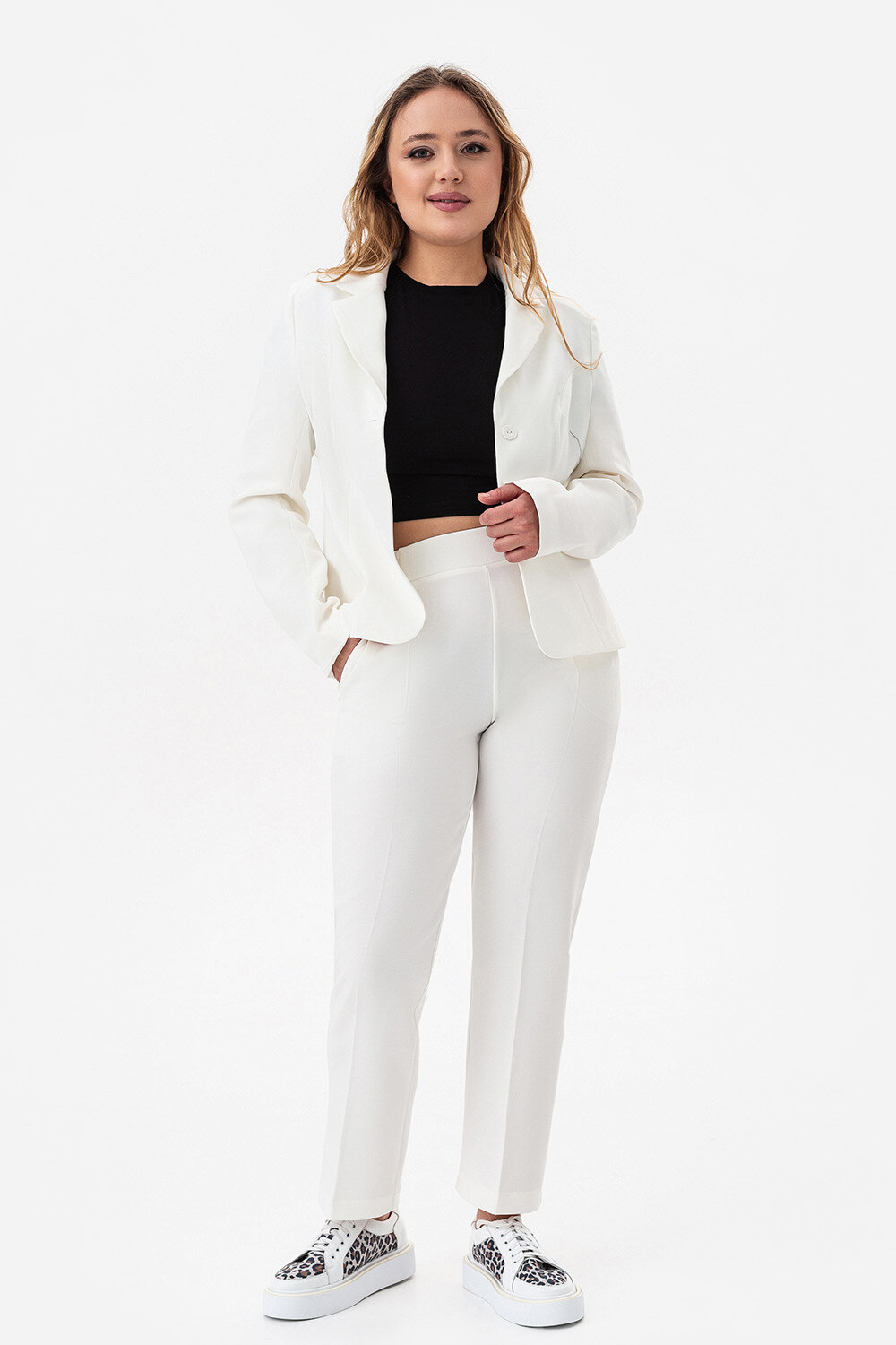 - Marynarkę można z powodzeniem łączyć z klasycznymi spodniami lub spódnicą, aby uzyskać biurowy wygląd, lub z dżinsami, aby uzyskać bardziej swobodny wygląd.