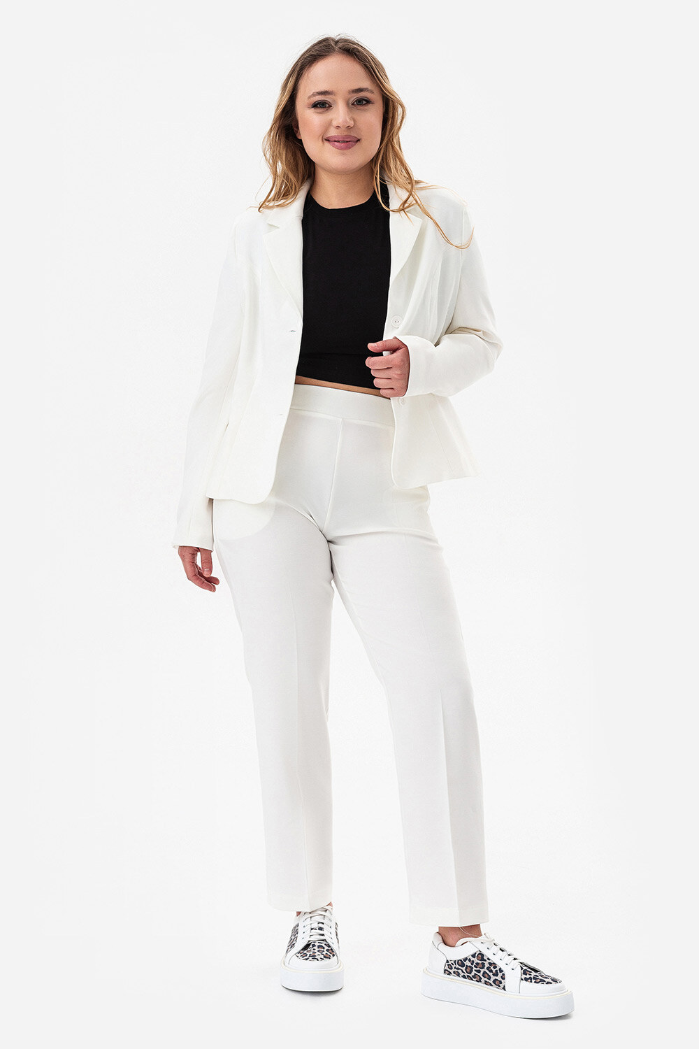 - Jeśli chodzi o buty, mogą to być klasyczne szpilki, mokasyny, a nawet minimalistyczne trampki, aby uzyskać nowoczesny i niecao swobodny wygląd.