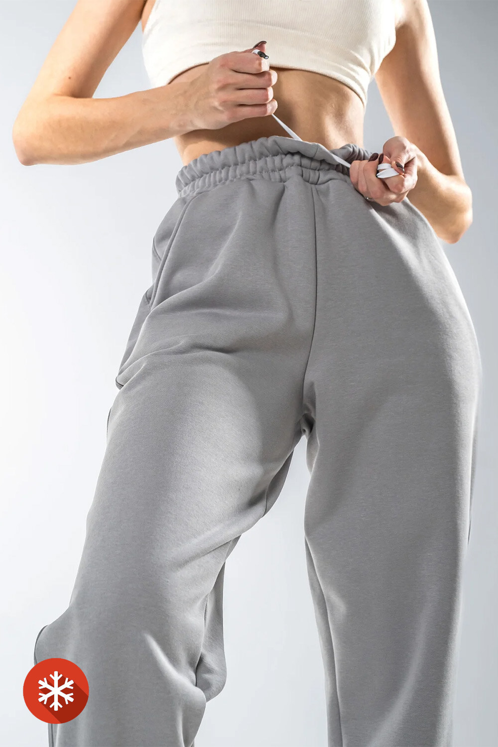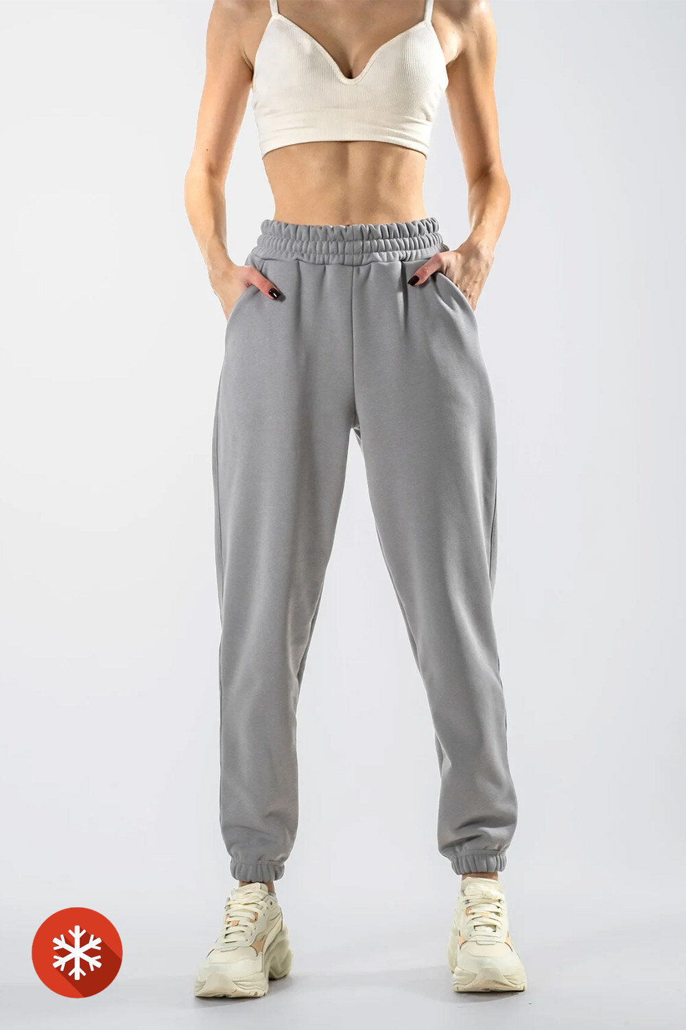 Damskie spodnie sportowe z flisową podszewką Jogger Szare Teamv 8034322