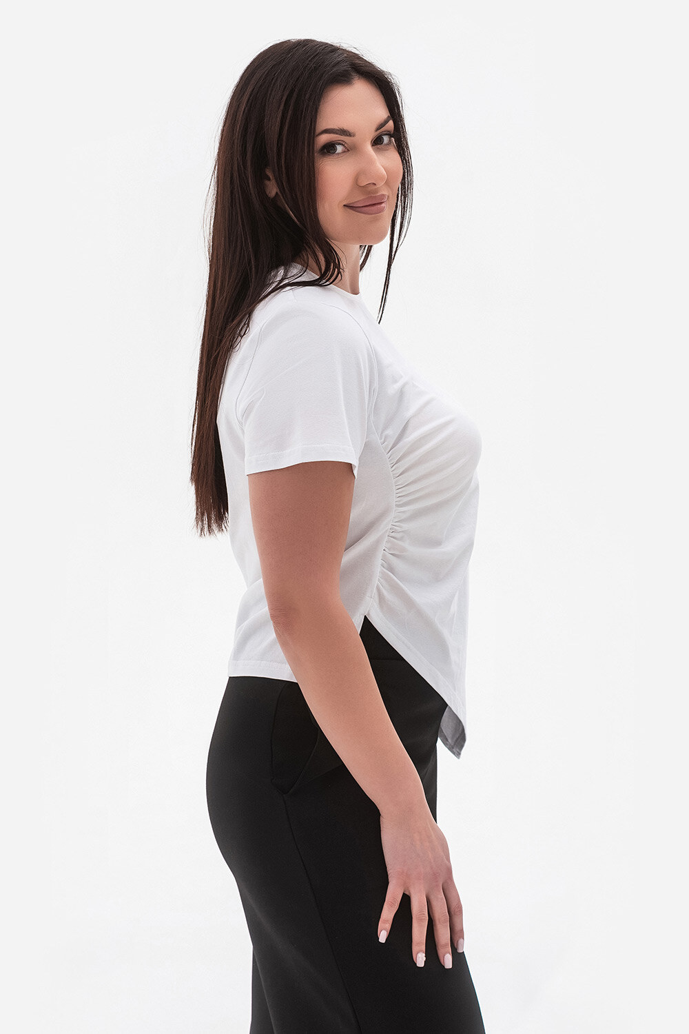 - Asymetryczna koszulka z drapowaniem - styl i wygoda.