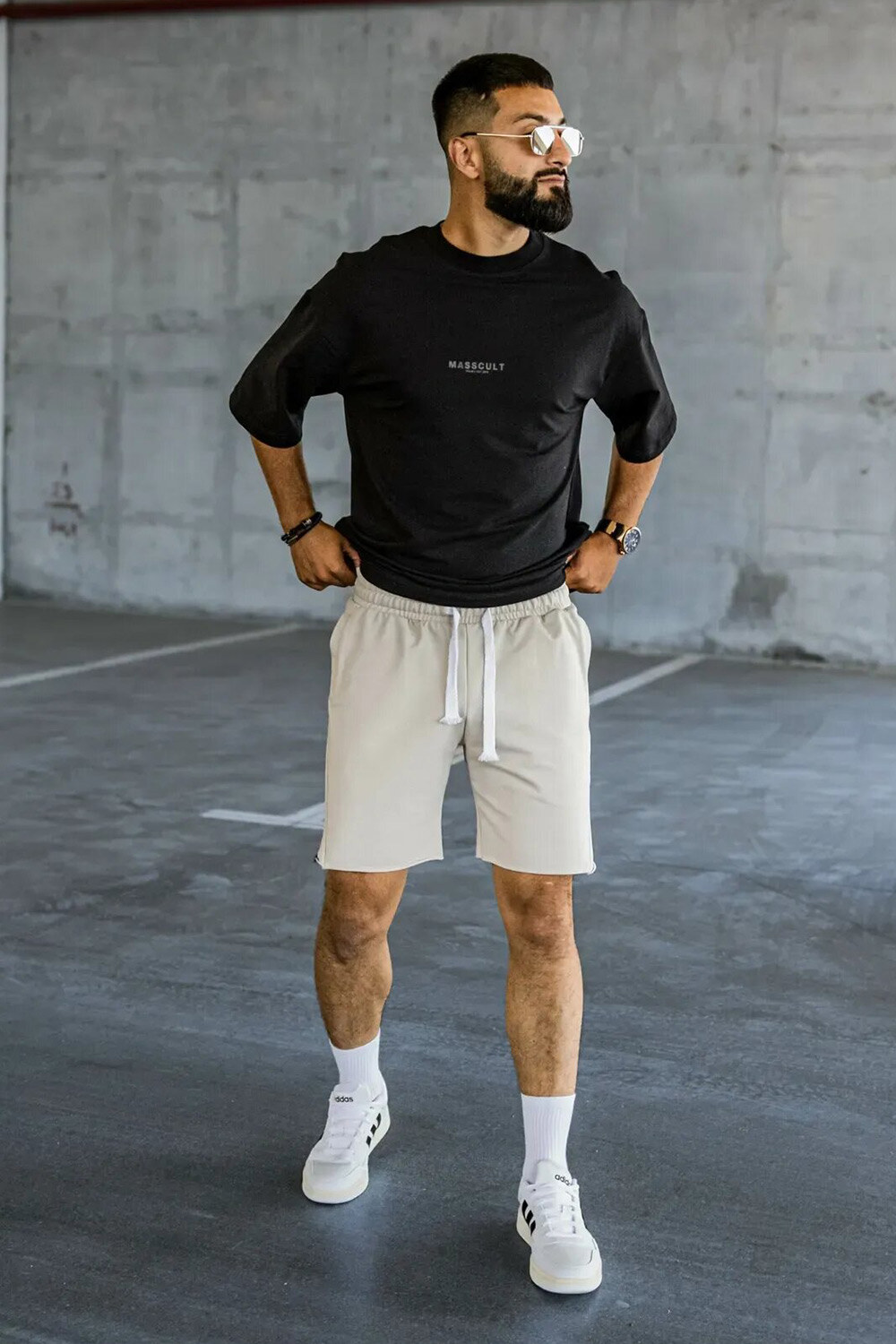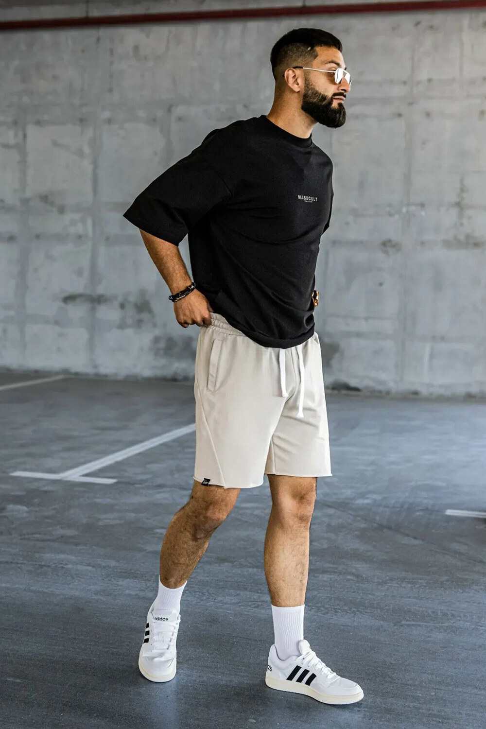 - Zwykłe szorty można łatwo połączyć z kontrastową koszulką oversize.