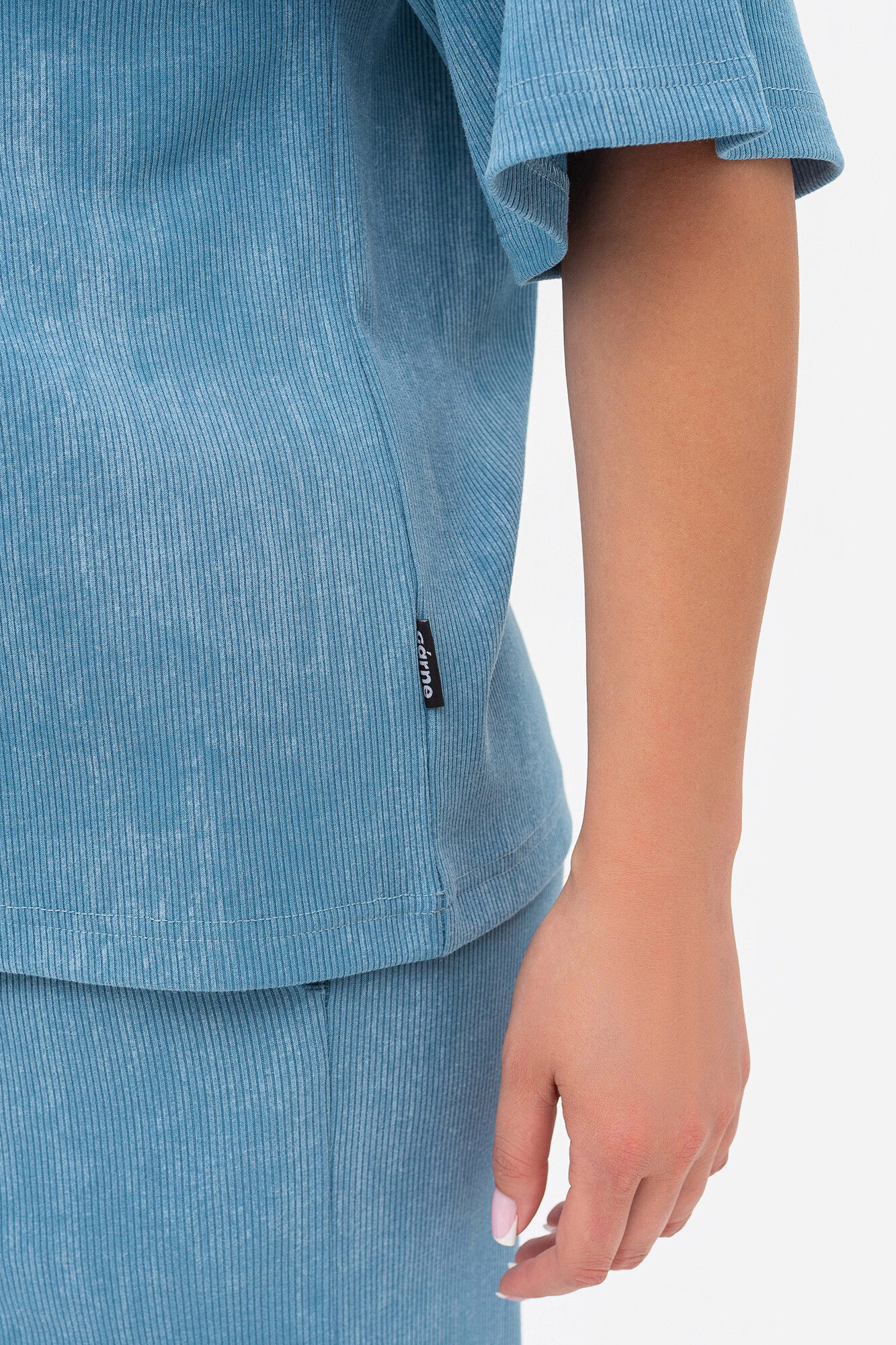 - Miękka, teksturowana tkanina dodaje mu głębi, a wydłużone krótkie rękawy zakrywają łokieć i nadają się na każdą porę roku.