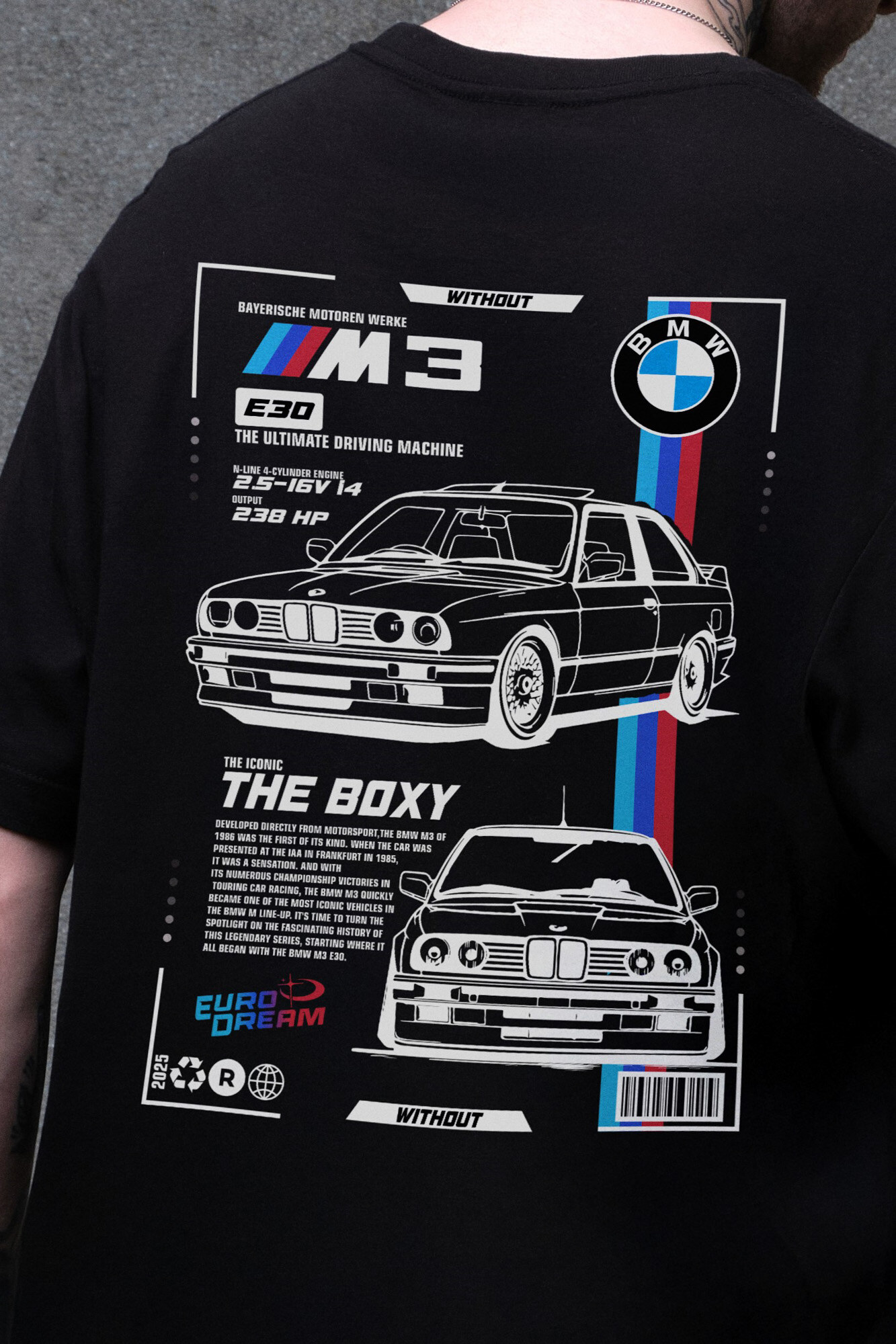 Męska koszulka oversize z nadrukiem BMW, czarna Without 8049628