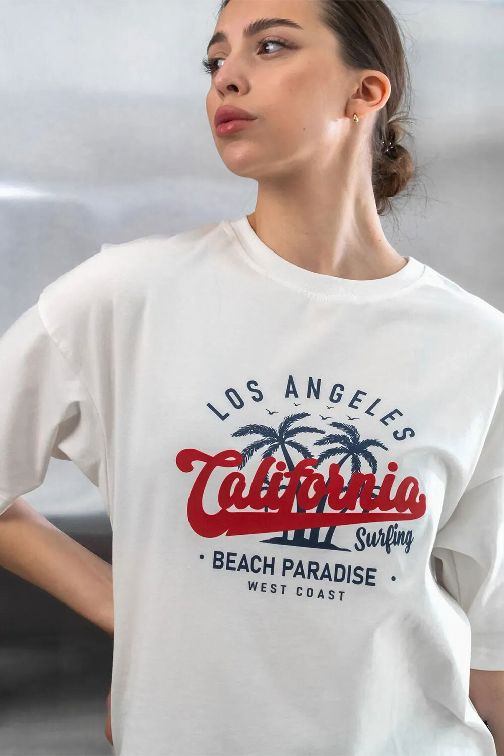 T-shirt damski wykonany z bawełny z nadrukiem CALIFORNIA White Teamv 8034436