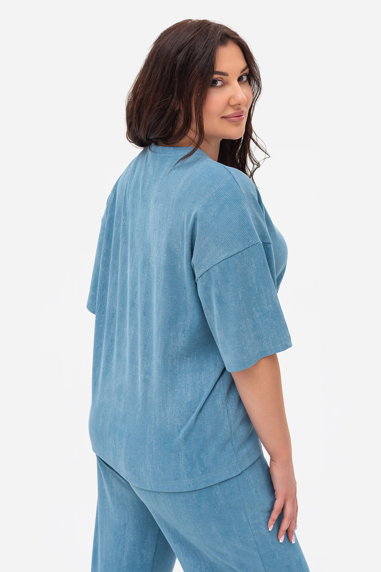 Damski kombinezon oversize w kolorze niebieskim z efektem gotowanej tkaniny Garne 3034744