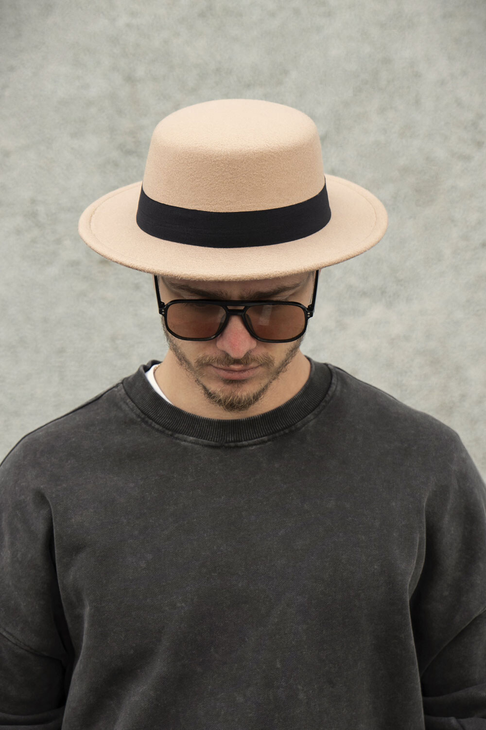 Męska czapka Walter z beżową wstążką Without 8049702