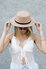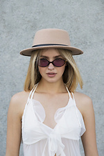 Загалом, це перший досвід володіння подібним капелюхом, але вже подобається, треба лише звикнути) приємна тканина, витончені форми і досить жорсткий сам по собі.