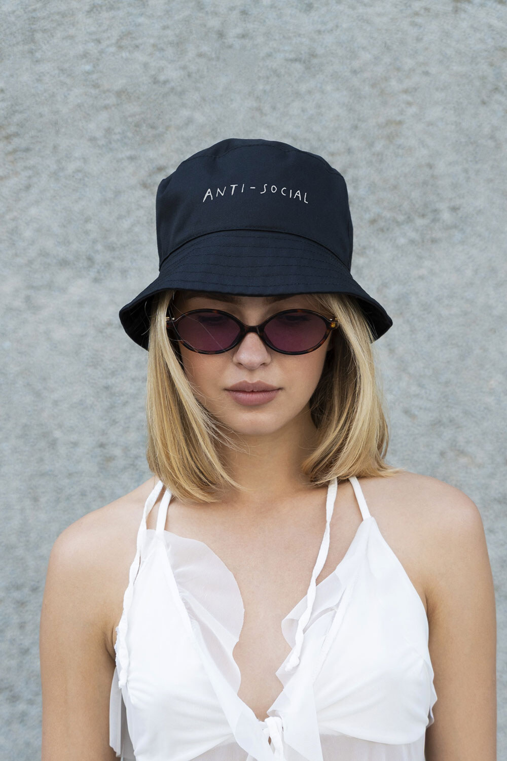 Damski kapelusz Panama z czarnym nadrukiem AntiSocial Without 8049894