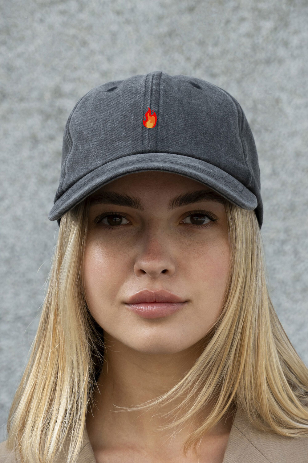 Damski czapka z daszkiem Vintage z nadrukiem Fire Black Without 8049810