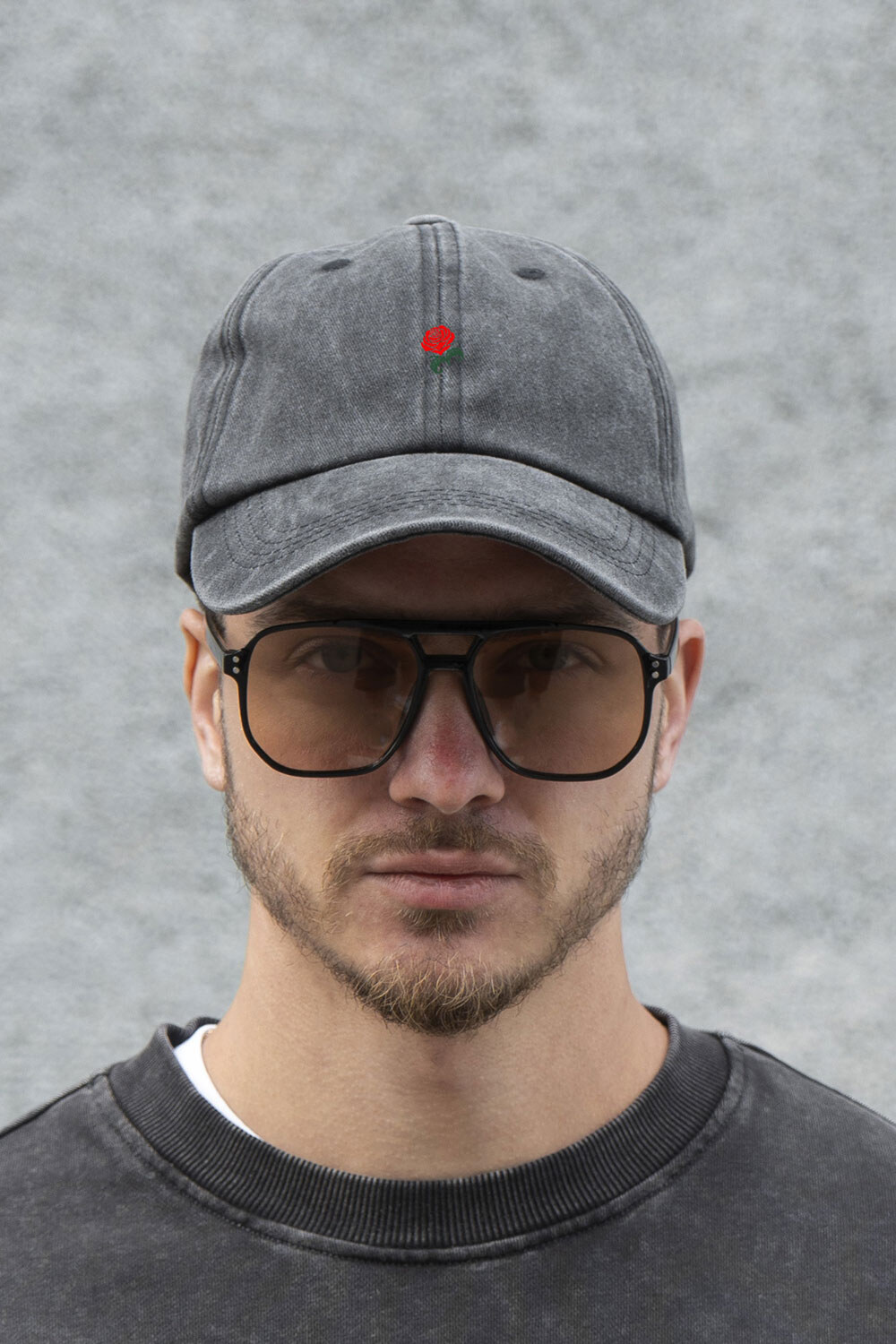 Męska czapka z daszkiem Vintage z nadrukiem Rose Black Without 8049815