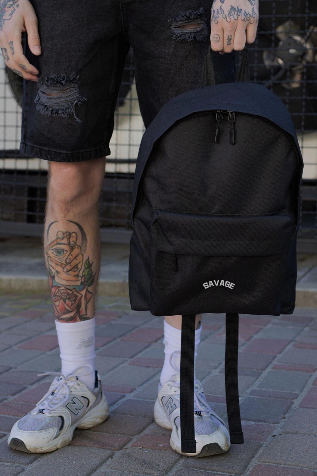 Herren Freizeit Schulrucksack Compact mit Druck Savage Schwarz Without 8049984