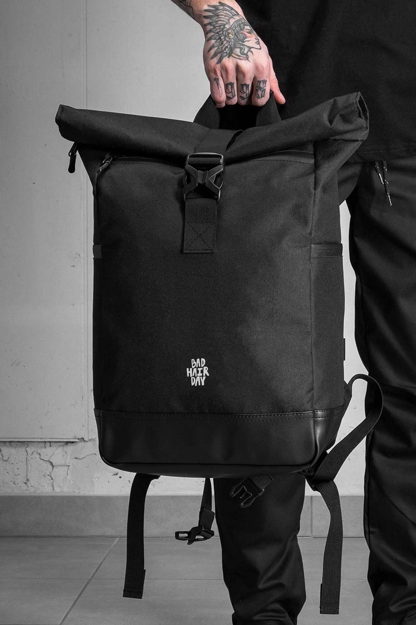 Męski plecak szkolny zwijany bez nadruku, czarny BadHair Without 8049996