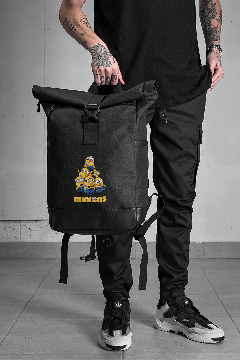 Casualowy plecak szkolny Rolltop dla chłopca z nadrukiem Minionki czarny Without 8055266