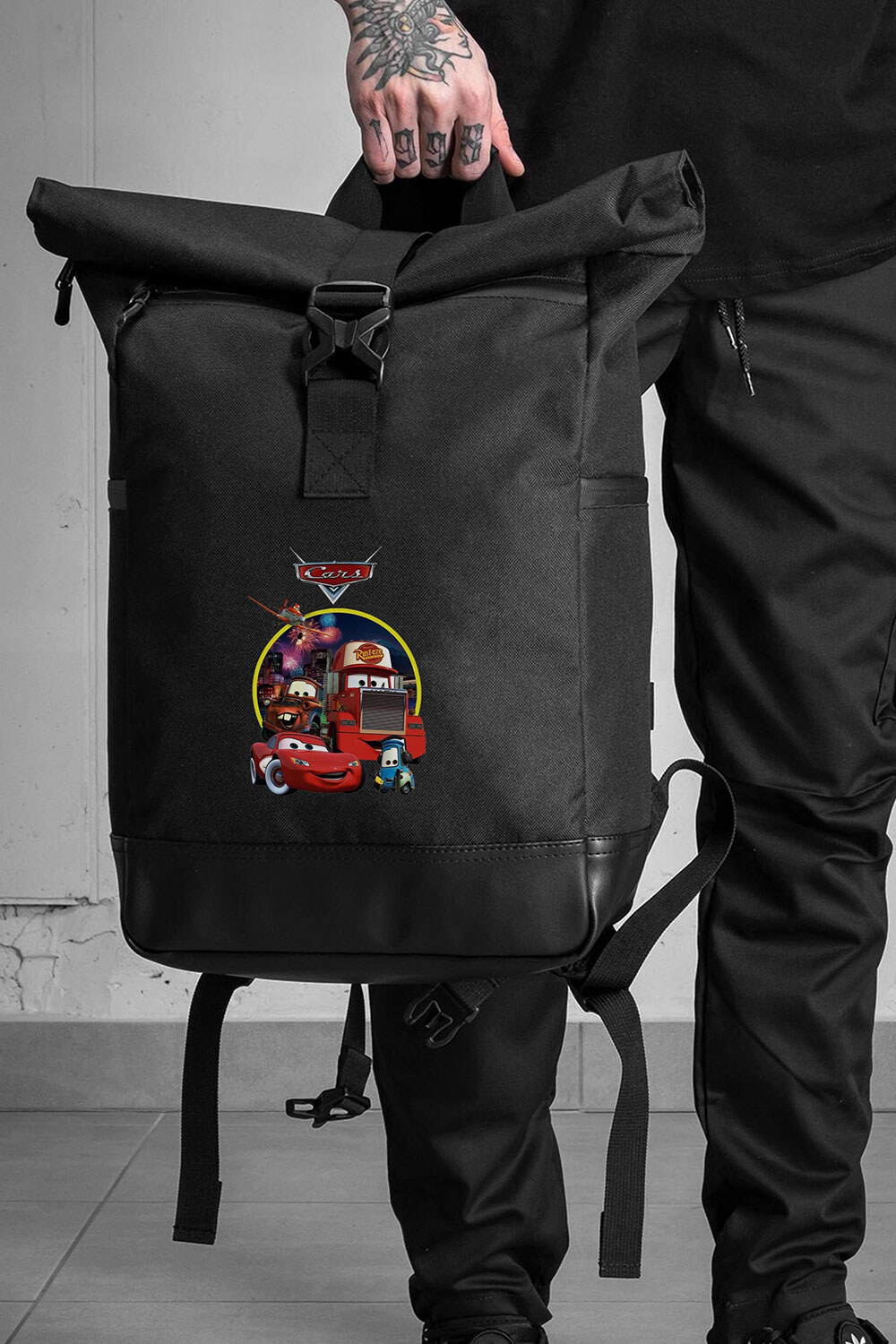Przypadkowy plecak szkolny Rolltop dla chłopca z nadrukiem samochodów czarny Without 8055274