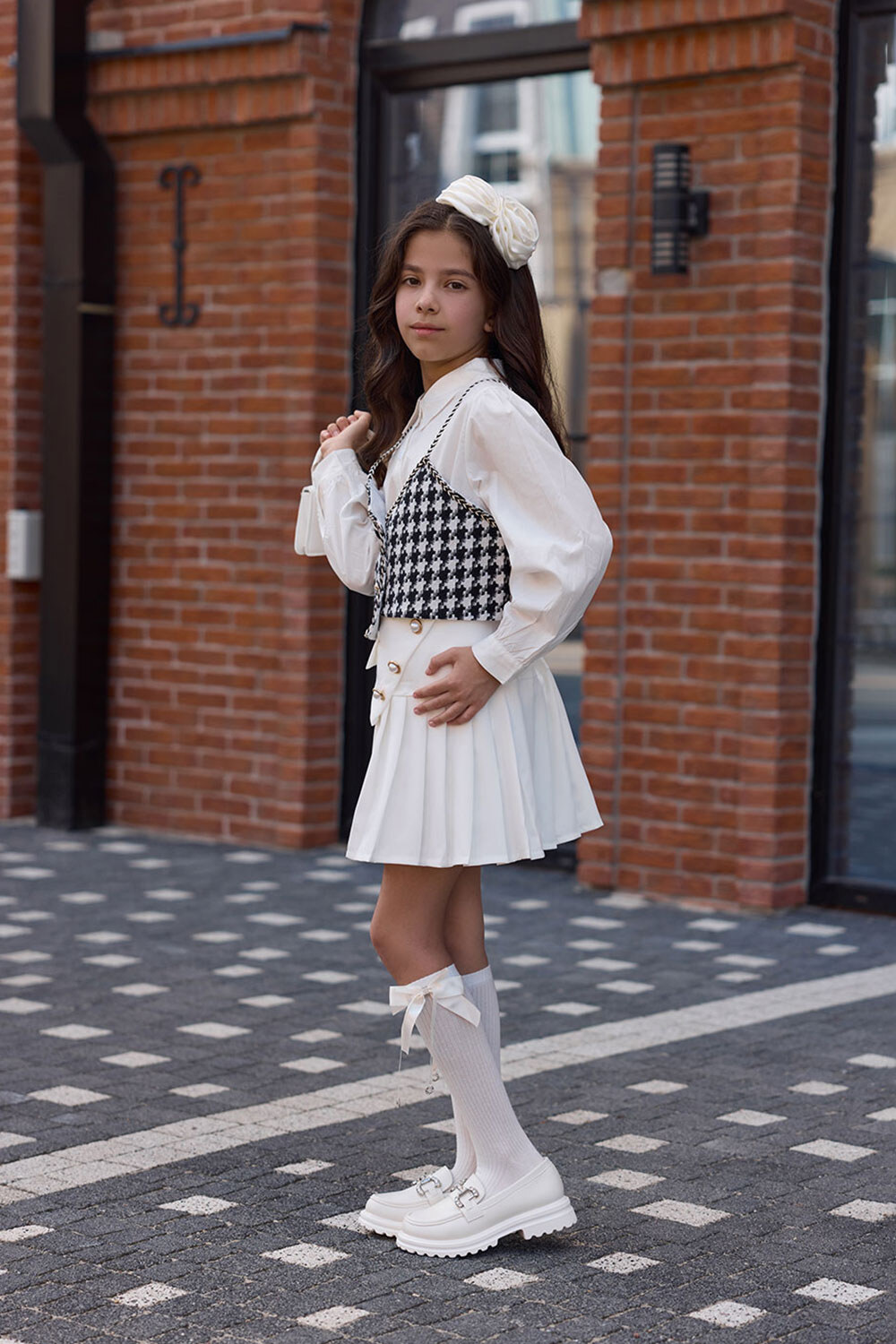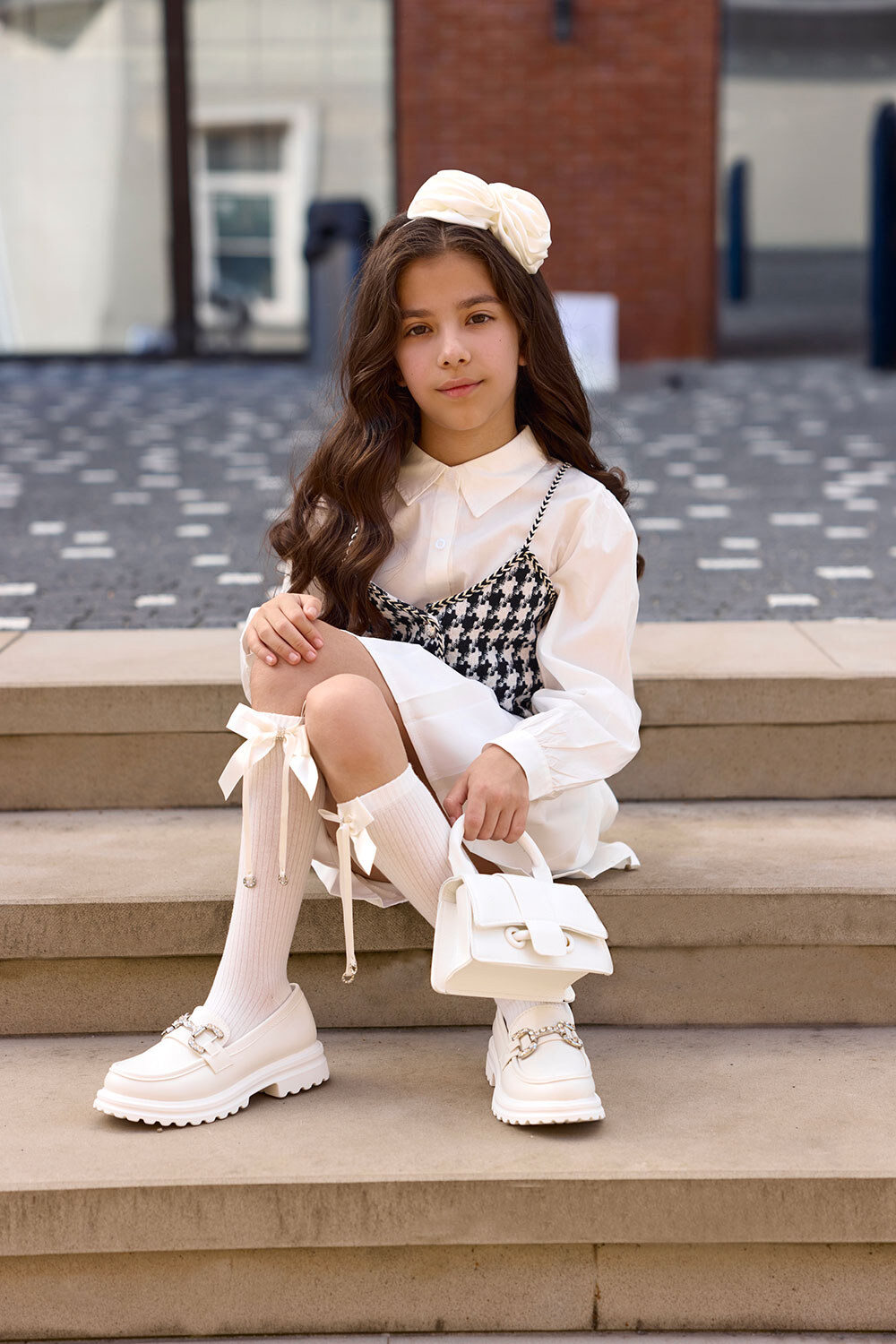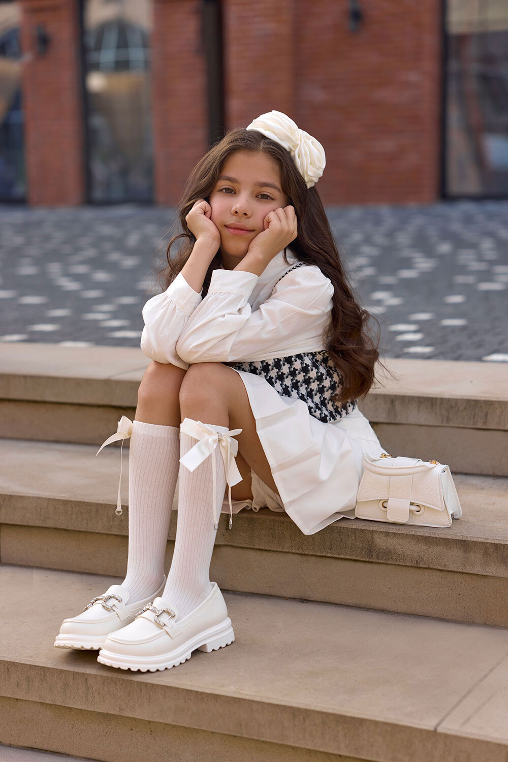 Dziecięce golfy mleczne z kokardką i dżetami M-SOCKS 2040338