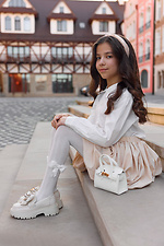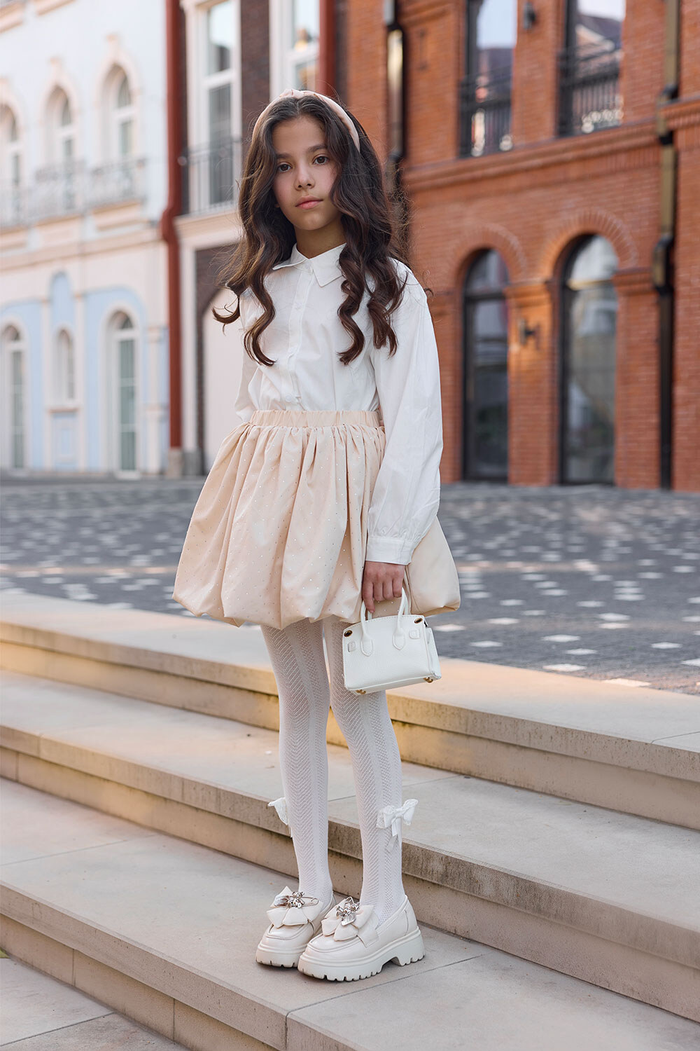 Rajstopy dziecięce ażurowe mleczne z kokardką M-SOCKS 2040344