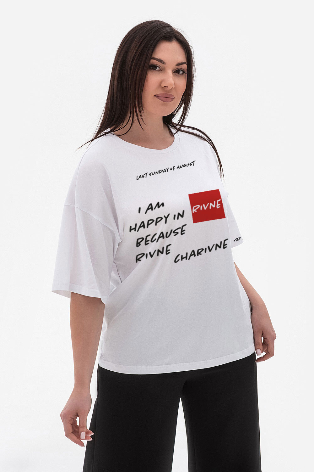 Weißes Damen-T-Shirt „Ich bin glücklich in Riwne“ Garne 9001584