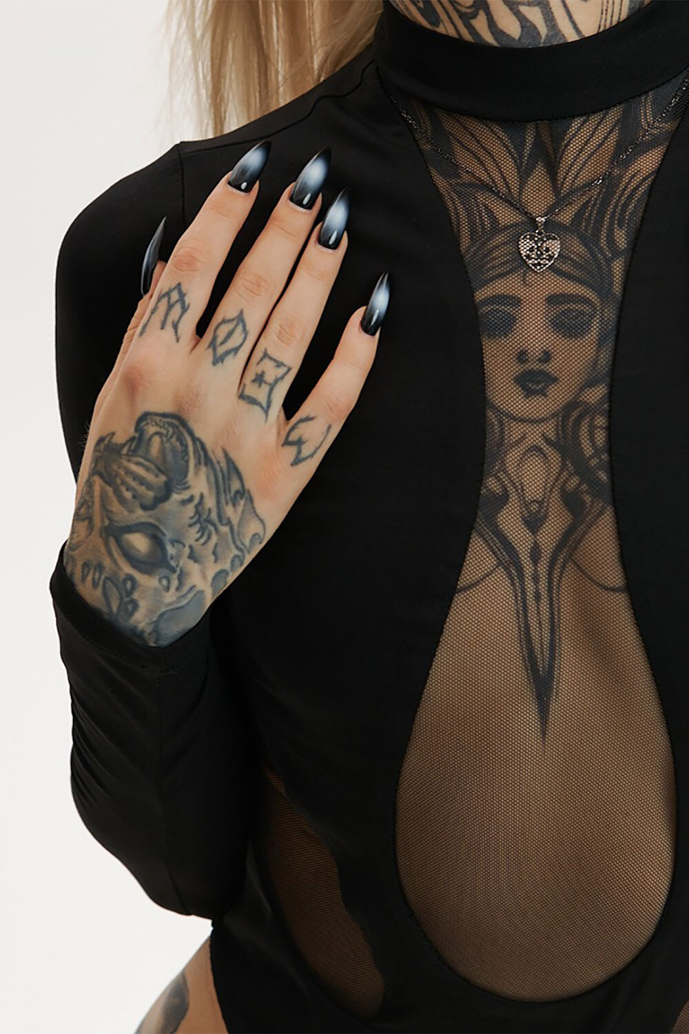 - Body z siateczkowymi wstawkami z wysokim dekoltem.